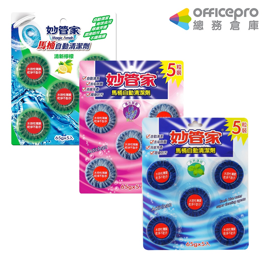 妙管家 馬桶自動清潔劑 天然薄荷 薰衣草香 清新檸檬 65gx5粒 卡 香氛 殺菌 除臭劑|Officepro總務倉庫天然薄荷|薰衣草香|清新檸檬Cleaning AgentsOfficepro總務倉庫 旗艦店