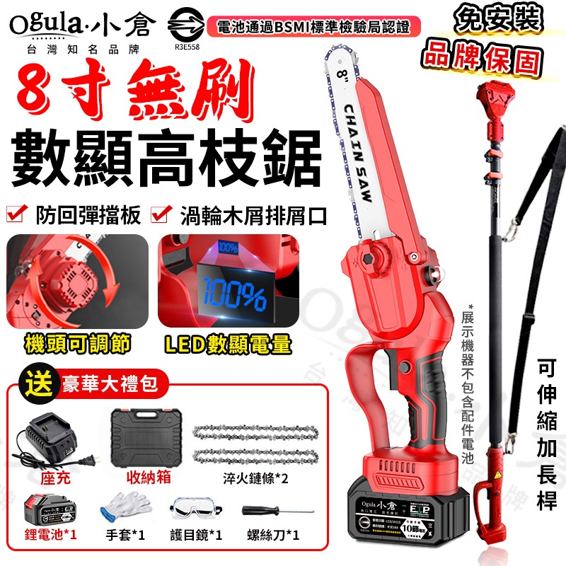 【Ogula小倉】高枝鋸 8寸無刷電鏈鋸 21V 高空鋸 電動鏈鋸機 帶電量顯示/排屑口 3580W大功率鏈鋸 臺灣品牌8寸無刷數顯【裸機】2鏈條+延長桿|8寸無刷數顯【五節一電】2鏈條+延長桿|8寸無刷數顯【五節兩電】2鏈條+延長桿|8寸無刷數顯【十節一電】2鏈條+延長桿|8寸無刷數顯【十節兩電】2鏈條+延長桿|8寸無刷數顯【十五節一電】2鏈條+延長桿|8寸無刷數顯【十五節兩電】2鏈條+延長桿|8寸無刷數顯【裸機】2鏈條|8寸無刷數顯【五節一電】2鏈條|8寸無刷數顯【五節兩電】2鏈條|8寸無刷數顯【十節一電】2鏈條|8寸無刷數顯【十節兩電】2鏈條|8寸無刷數顯【十五節一電】2鏈條|8寸無刷數顯【十五節兩電】2鏈條ToolsOgula小倉【官方旗艦店】