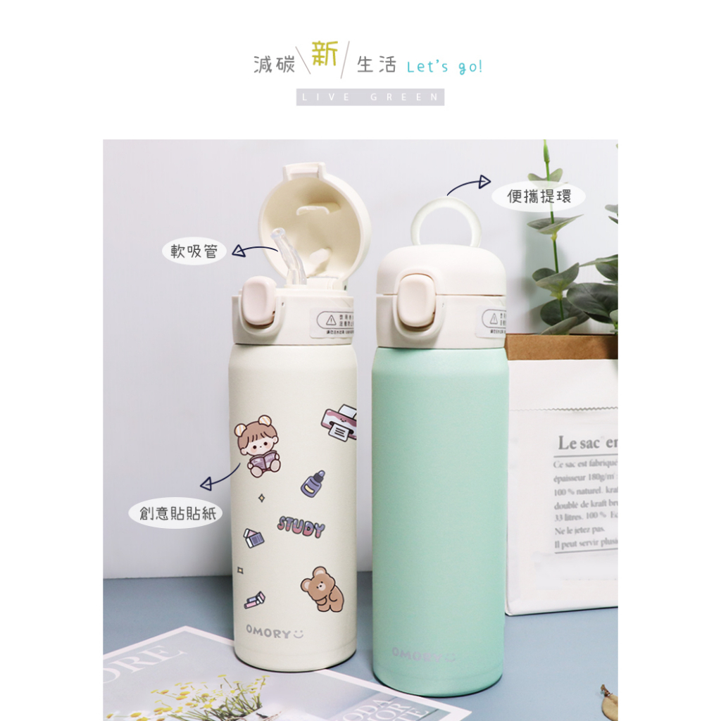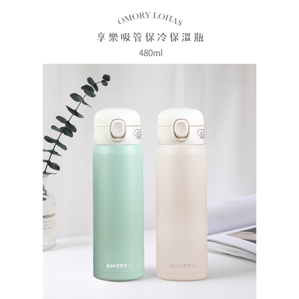 【OMORY】享樂吸管保冷保溫瓶 水壺 480ML奶白,1入|奶白,2入|抹綠,1入|抹綠,2入Water Bottles & AccessoriesOMORY 樂活美學館