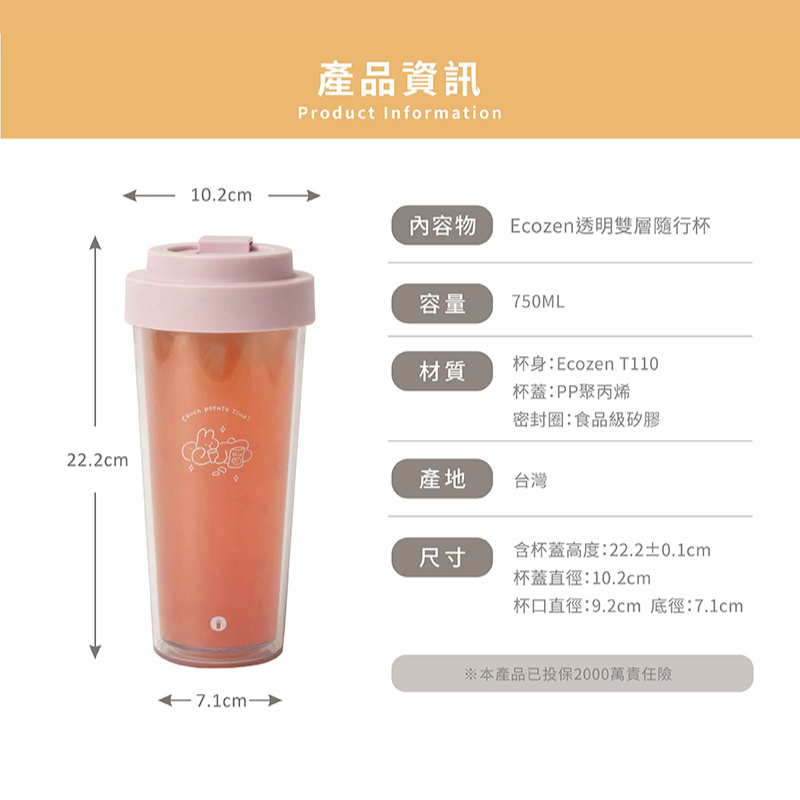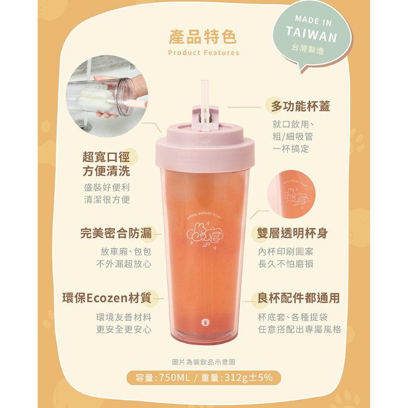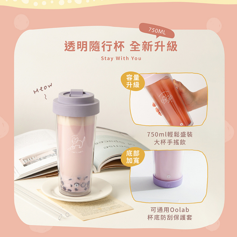 【Oolab 良杯製所】(換購品賣場) 陪伴系列 Ecozen 透明雙層隨行杯 750ml (沒有附吸管)Milk Kitten|Bubble Puppy|Sundae Birdie|Lazy BunnyCups, Mugs & GlassesOolab 良杯製所