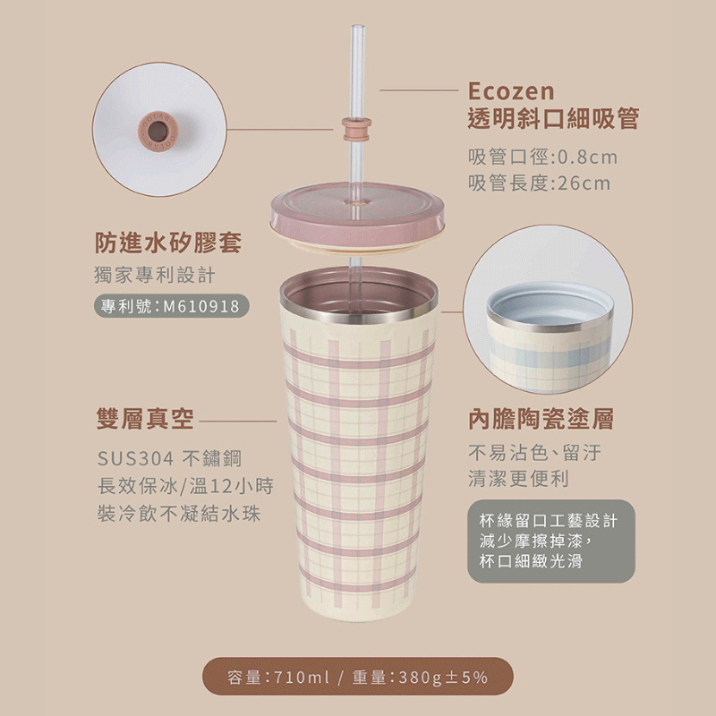 【Oolab 良杯製所】法式織戀系列 二代陶瓷易潔層吸管杯710ml(4款) 保溫 保冷 水杯 水壺 手搖愛戀絮語,單杯|香草誓約,單杯|漫步星辰,單杯Water Bottles & AccessoriesOolab 良杯製所