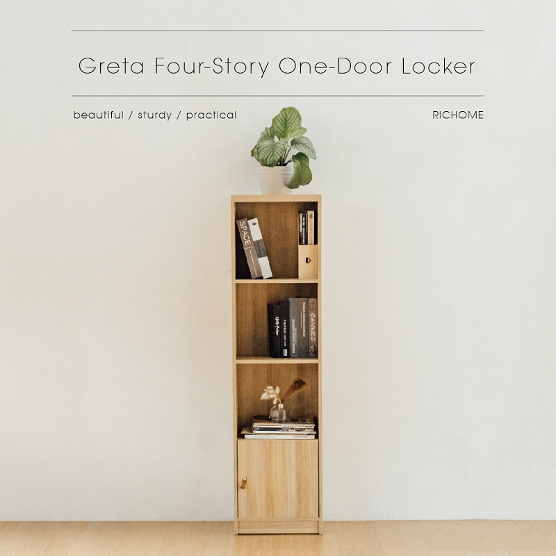 RICHOME BO393 格麗塔四層一門置物櫃(防潑水)(美背設計) 書櫃 收納櫃 置物櫃原木色Cupboards & CabinetsRICHOME 生活家居