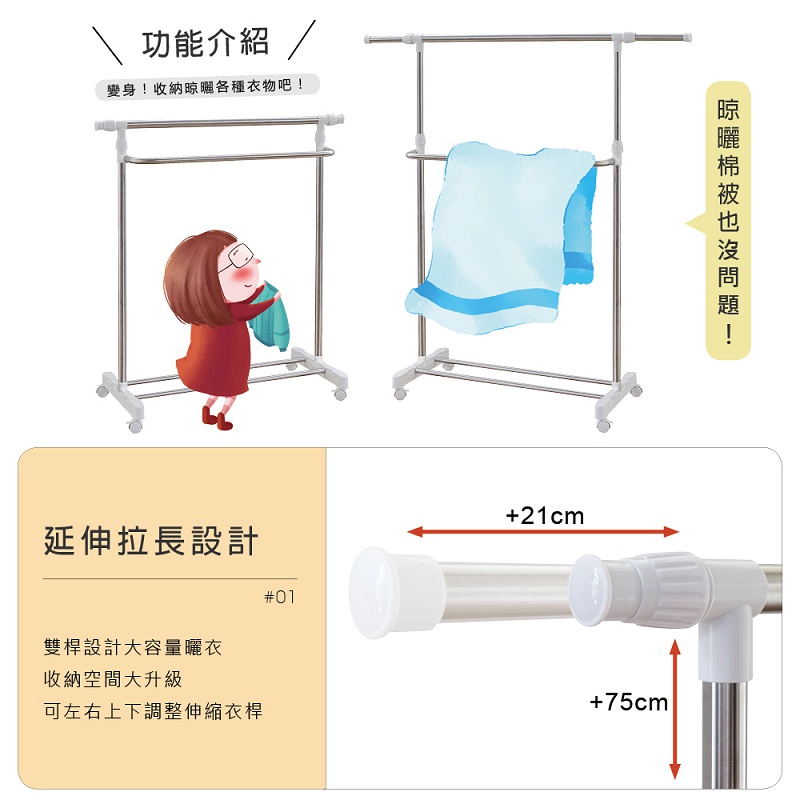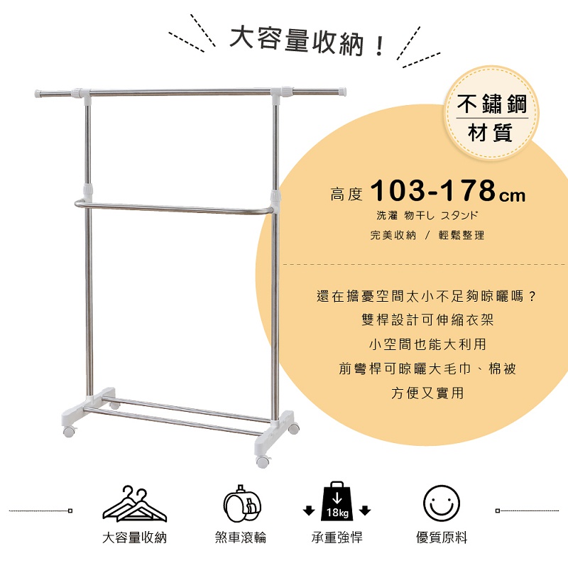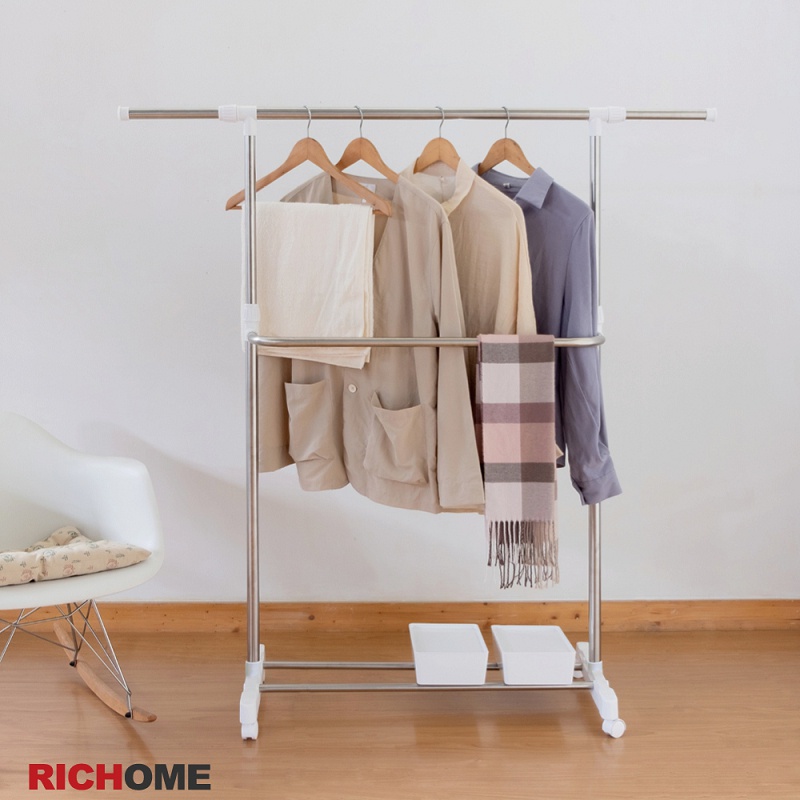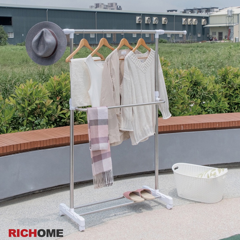 RICHOME HA144 超值不鏽鋼雙桿衣架 曬衣架 晾衣架 掛衣架白色Clotheslines & Drying RacksRICHOME 生活家居