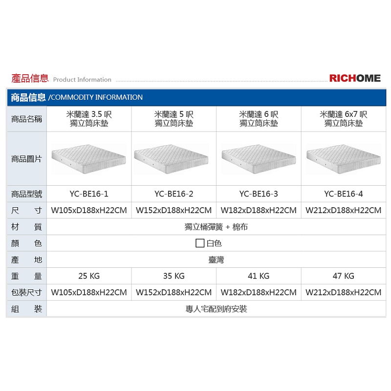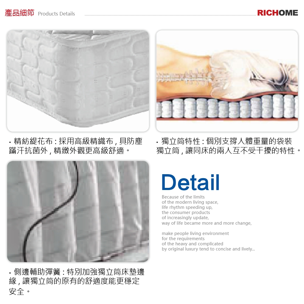 RICHOME 單人加大3.5呎獨立筒床墊 獨立筒 床墊 獨立筒床墊 單人加大床墊 單人床墊 BE16-16呎獨立筒床墊|6×7呎獨立筒床墊|5呎獨立筒床墊|3.5呎單人加大獨立筒床墊MattressesRICHOME 生活家居