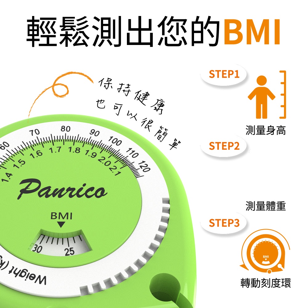 【Panrico 百利世】BMI健康捲尺 BMI捲尺 身體質量指數 健康尺 量尺 腰圍尺 胸圍尺 臀圍尺蘋果綠|蜜桃粉|晴空藍ToolsPanrico 百利世工具職人館