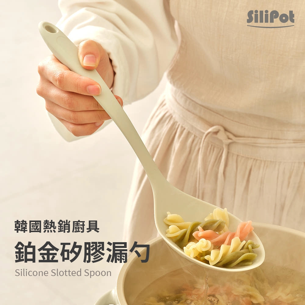 【韓國 SILIPOT】 熱銷廚具鉑金矽膠漏勺 耐高溫 不沾鍋專用 煮水餃 吃火鍋 必備 漏勺 大漏勺 撈麵勺時尚紅|抹茶綠|莫蘭迪藍|冷灰|燕麥奶Spatulas & Cooking TweezersPomier朴蜜兒