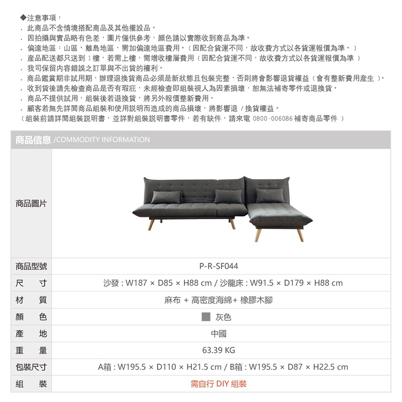 RICHOME SF044 西瑟L型沙發(附靠枕) 沙發 L型沙發 三人沙發 沙龍床沙發床|沙龍床|沙發床+沙龍床SofasRICHOME 生活家居