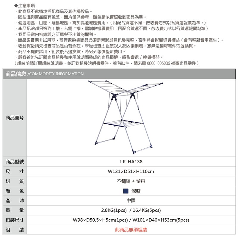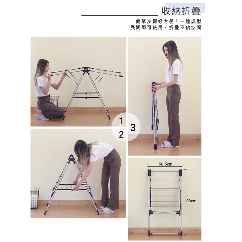 RICHOME HA138 日日晴折疊曬衣架(不鏽鋼)(多段式調節) 掛衣架 晾衣架 收納架深藍色Clotheslines & Drying RacksRICHOME 生活家居