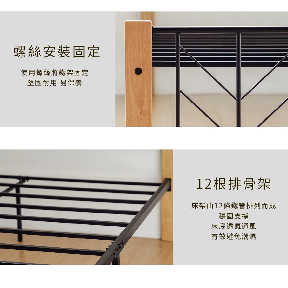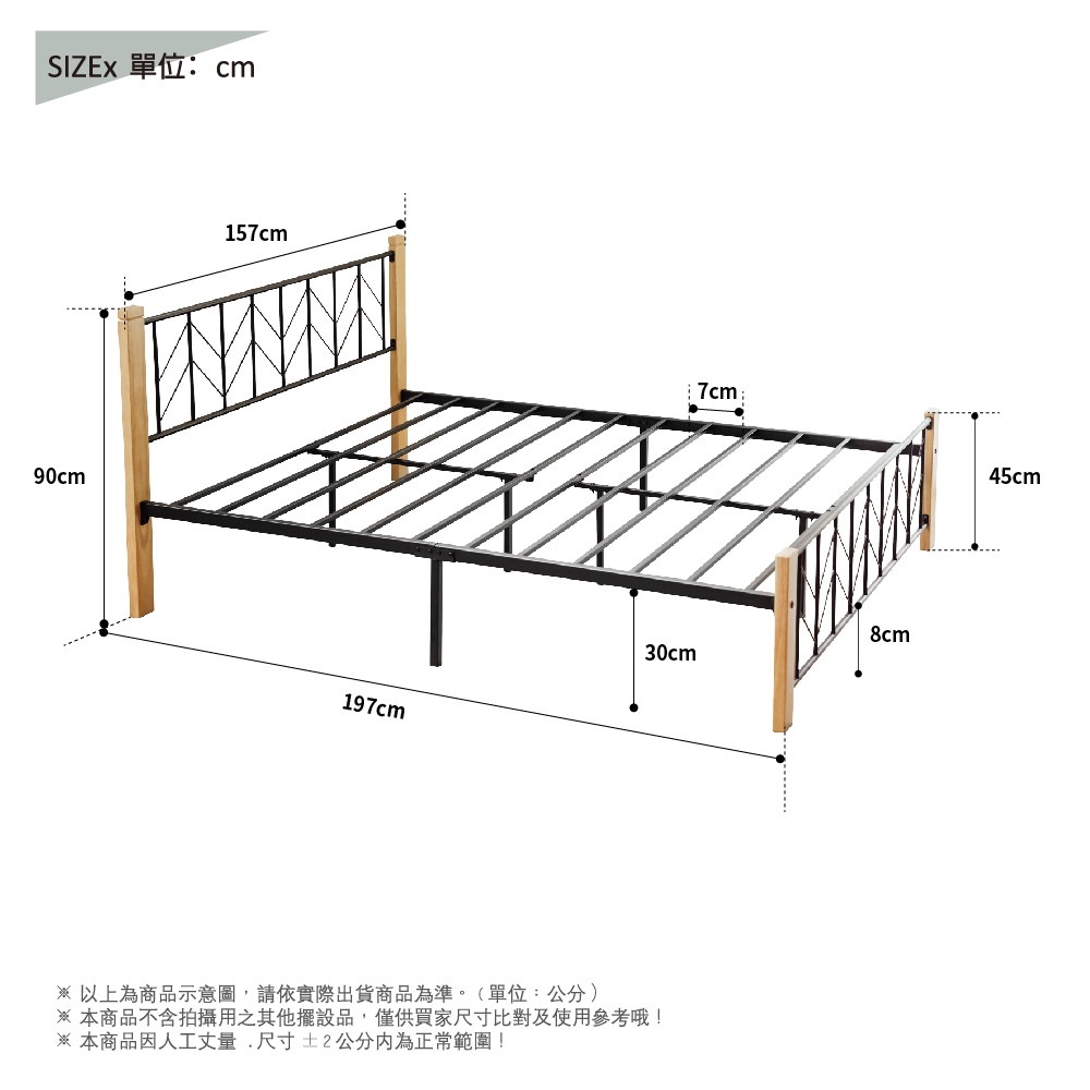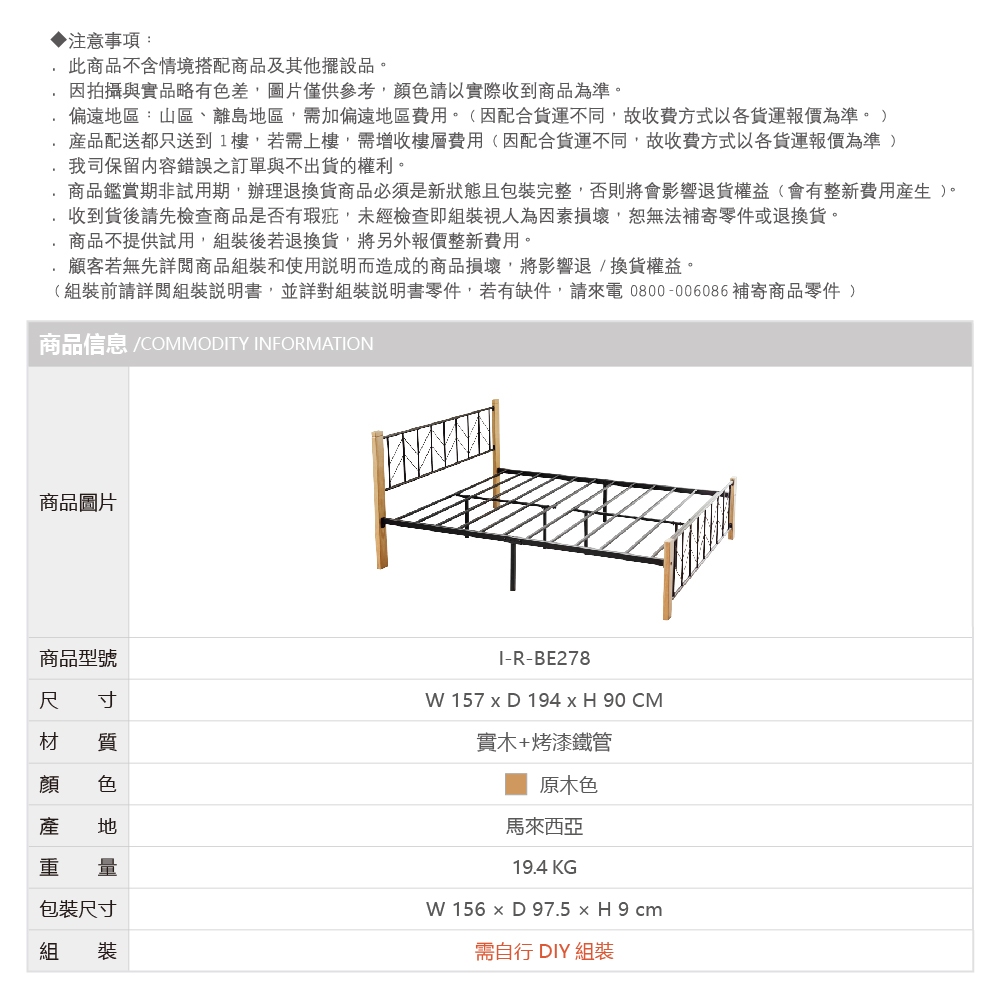 RICHOME 亞羅雙人床架 5呎雙人床架 床架 鐵床架 實木床架 BE278原木色Bed Frames & HeadboardsRICHOME 生活家居
