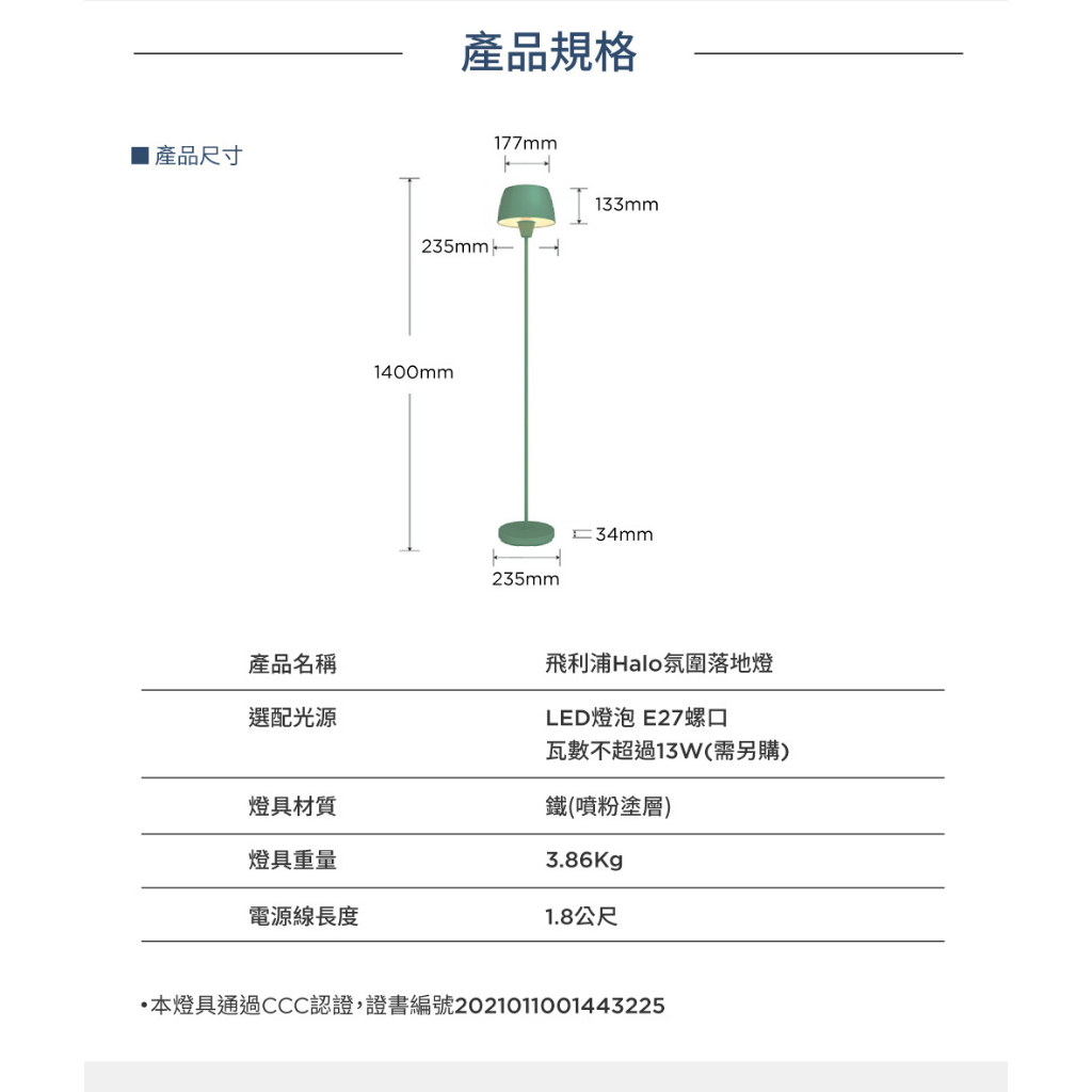 Philips 飛利浦 44102 Halo氛圍落地燈 立燈+ WIZ球泡 超值組合燕麥灰|羅勒綠|黑色PHILIPS 飛利浦照明旗艦館