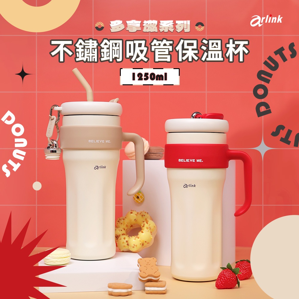 【Arlink雅聯】多拿滋系列 不鏽鋼吸管保溫杯1250ml 保溫杯 冰霸杯 隨行杯 耐熱保冰 手搖杯 寬把手 台灣品牌紅絲絨蛋糕|伯爵奶茶Water Bottles & AccessoriesPhilo飛樂|arlink雅聯【官方旗艦店】