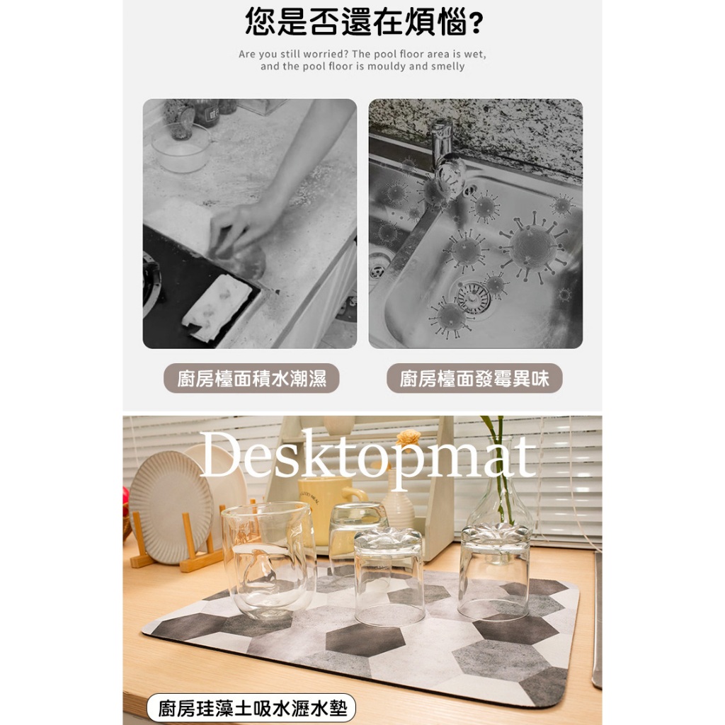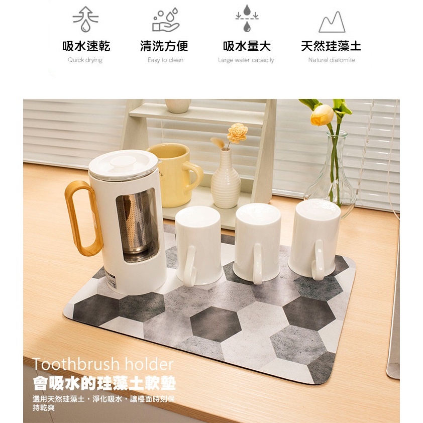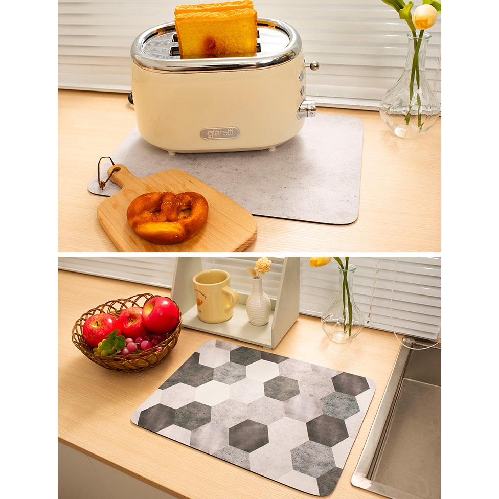 QIDINA 台灣獨家設計SGS認證高質感北歐風軟硅藻土桌面吸水墊 30X40cm現-灰泥工業時尚風(桌30*40cm)|現-六角銀河百搭風(桌30*40cm)Placemats & CoastersQIDINA