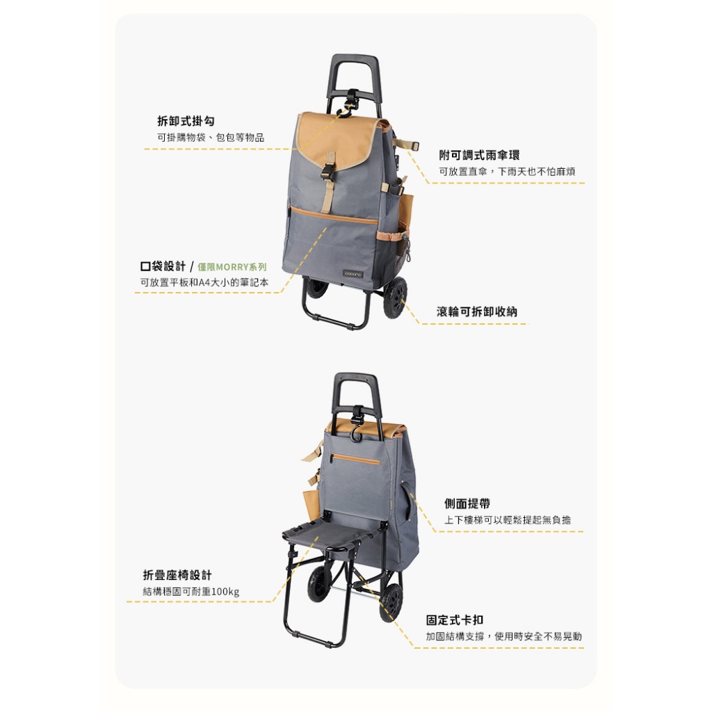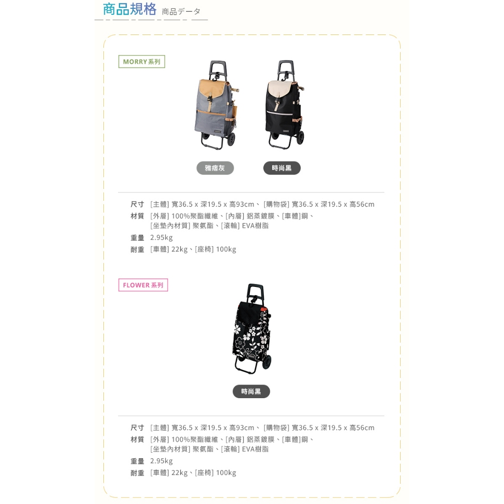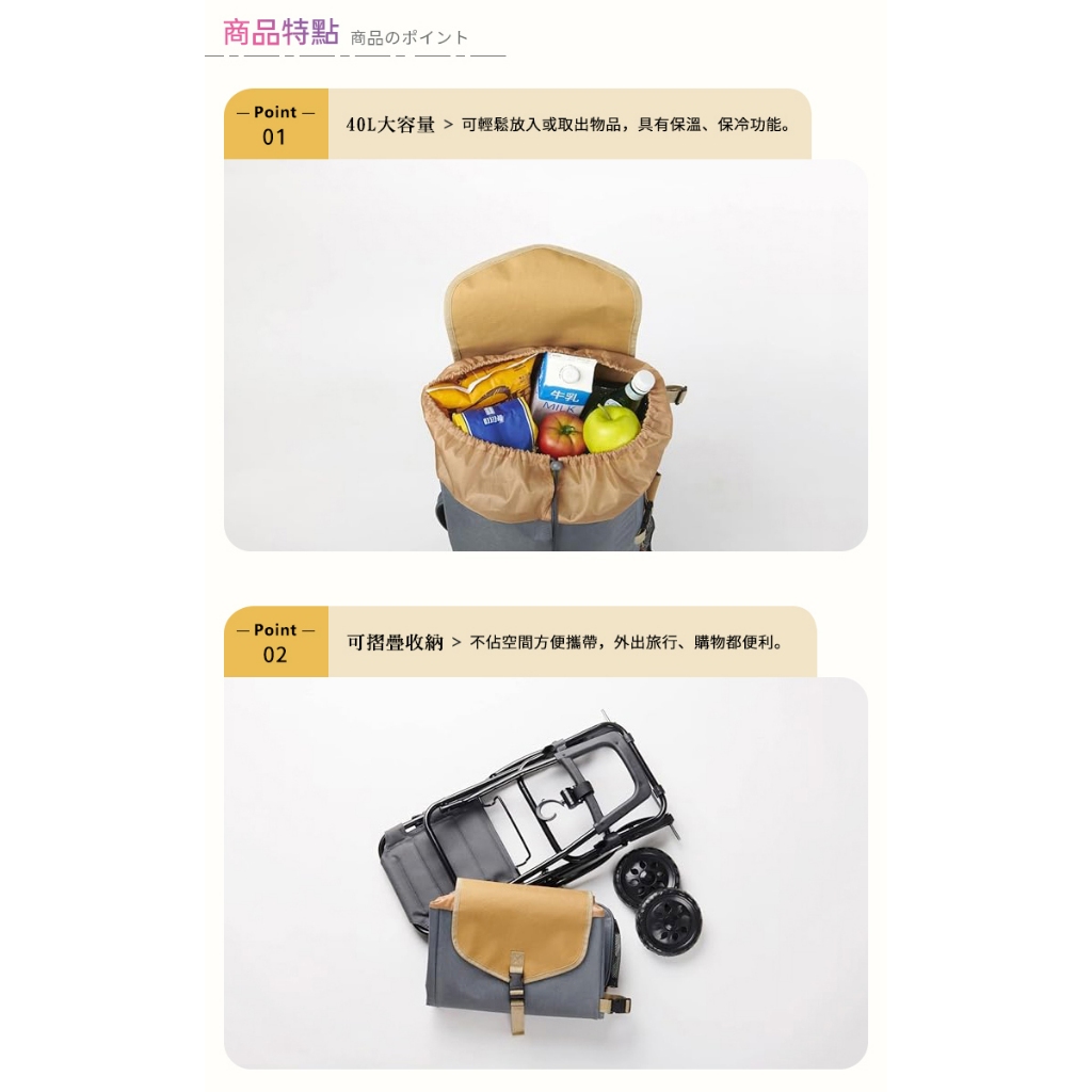 【日本cocoro】MORRY 多功能保溫保冷摺疊購物車(附座椅)-40L-多色可選雅痞灰|時尚黑Trolliesnicegoods 生活好東西