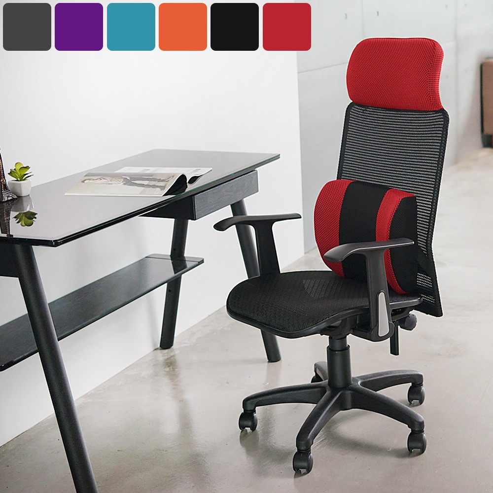 完美主義|高背透氣網(附PU枕) 電腦椅 辦公椅 書桌椅 工作椅 主管椅 扶手電腦椅 會議椅 主管椅 【I0220】紅|橘|藍|黑|灰|紫Benches, Chairs & StoolsPeachyLife完美主義
