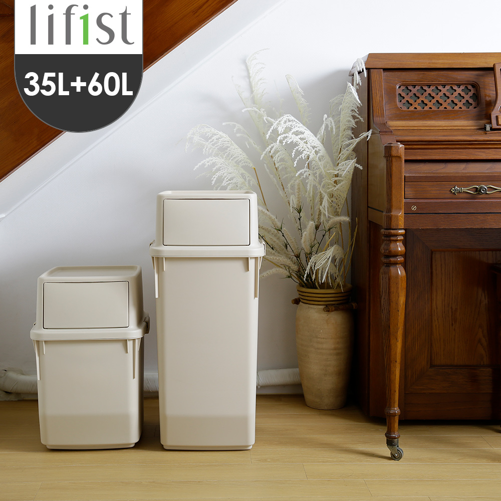 完美主義│lifist 簡約前開式回收桶60L(四色) 垃圾桶 回收桶 收納 前開桶 大容量 分類桶【G0022】黑色1入|白色1入|米色1入|灰色1入Trash & Recycling BinsPeachyLife完美主義