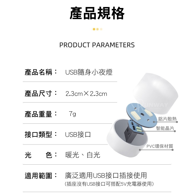 LED小圓燈 省電 便攜式小夜燈 白光 LED燈 USB燈 護眼迷你燈 隨身燈 迷你小燈 充電頭 小夜燈 宿舍燈USB隨身小夜燈/暖光|USB隨身小夜燈/白光Runway Collection