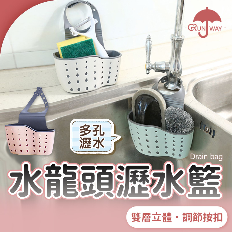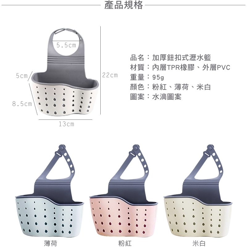加厚 鈕扣式 水龍頭瀝水籃 收納籃 雙層 菜瓜布收納 掛式瀝水籃 廚房收納 菜瓜布架 水槽掛袋 浴室收納粉紅|薄荷|米白Kitchen RacksRunway 居家生活 戶外嚴選 隱形內衣 胸貼 胸墊 泳鏡 戲水周邊