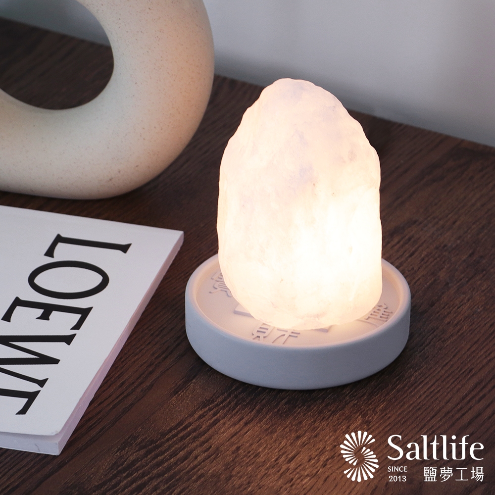 【鹽夢工場】清水模系列|小白原礦鹽燈|鹽燈 白鹽燈 鹽燈風水擺飾 小夜燈 鹽燈燈泡 玫瑰鹽燈 鹽燈專用電線招財進寶底座|招財進寶底座+七彩瑪瑙石|清水模原色底座|甜甜圈底座|清水模石墨黑底座|甜甜圈底座SALTLIFE鹽夢工場|精品鹽燈 鹽燈