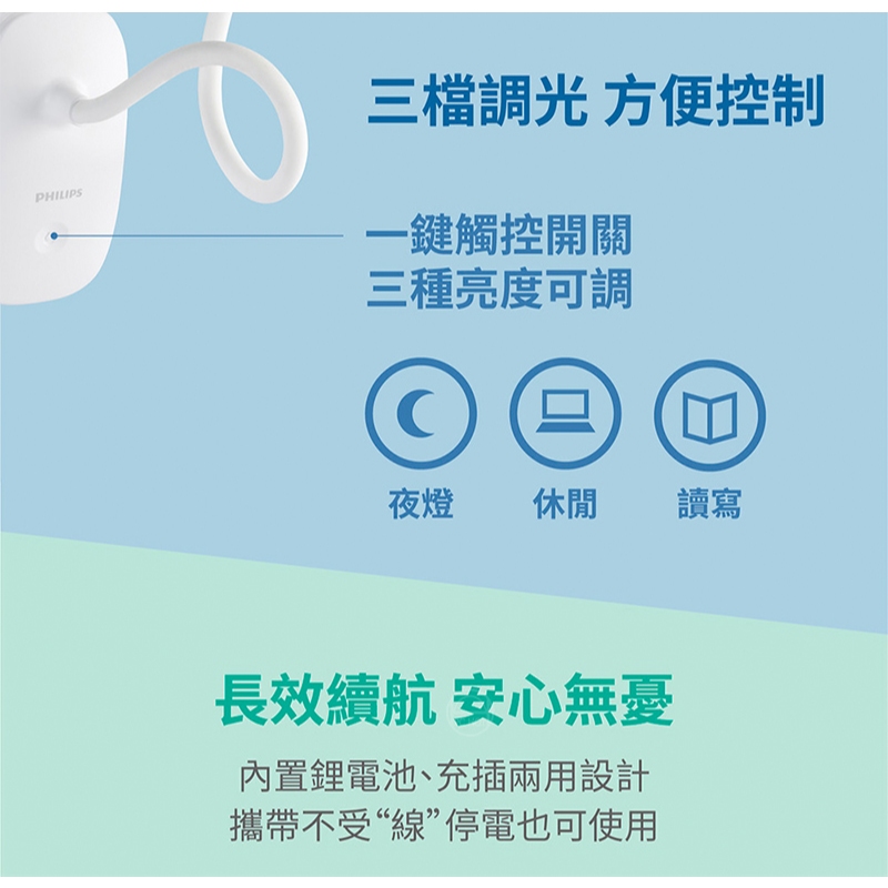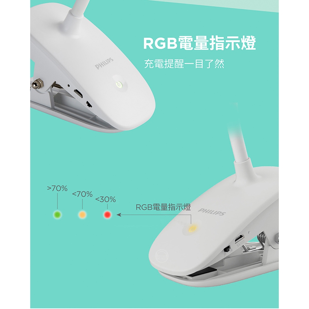 Philips 飛利浦 PD045 酷炫 66149 LED全光譜 充電夾燈 白色 小夜燈 三段調光 鵝頸軟管 檯燈主商品|⏰主商品限時促銷|♻福利品【已拆封測試】PCHOT 線上電競 | 3C旗艦店