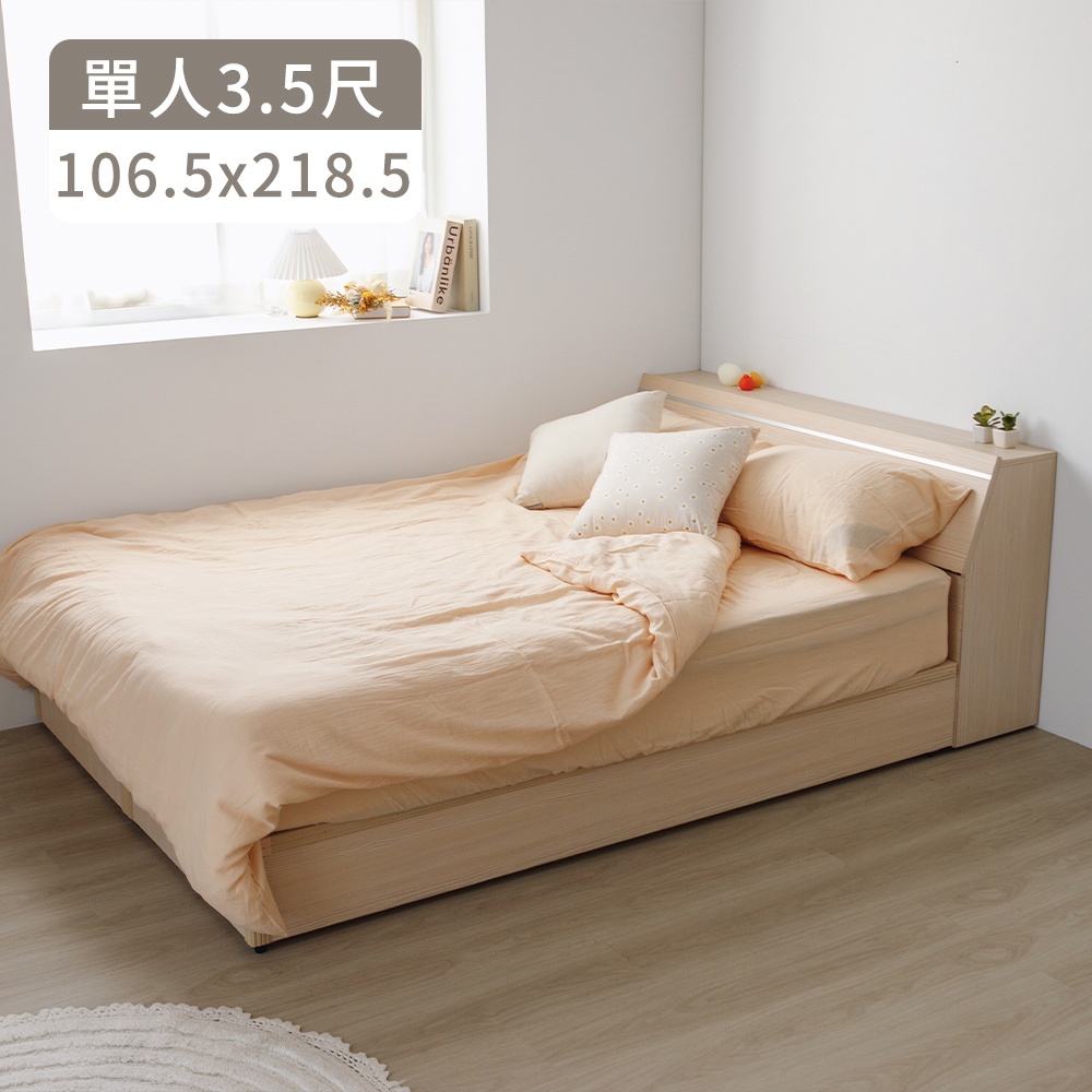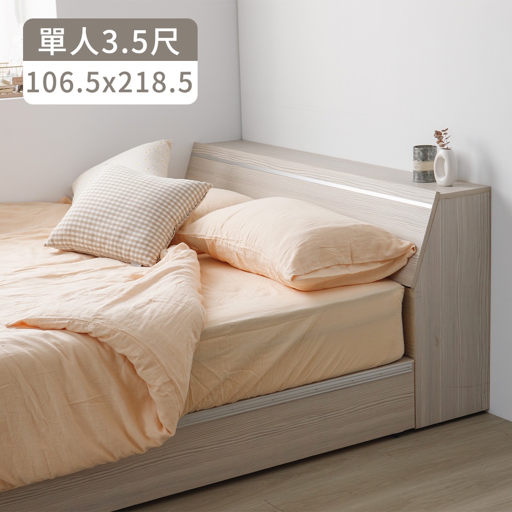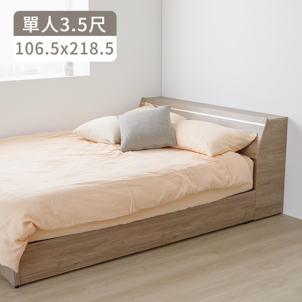 完美主義|Kim鋁條收納單人3.5尺床組(床頭+床箱) 單人床 床架 床板【R0230】雪杉|梧桐|雪松|灰橡Bed Frames & HeadboardsPeachyLife完美主義