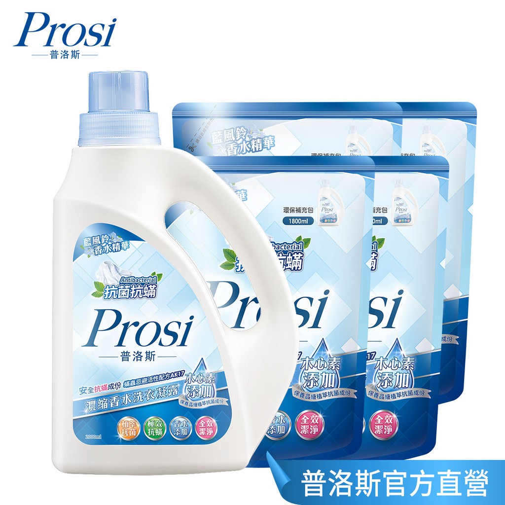 【Prosi普洛斯】抗菌抗蟎濃縮香水洗衣凝露-藍風鈴2000mlx1入+1800mlx4包【Prosi普洛斯】抗菌抗蟎濃縮香水洗衣凝露-藍風鈴2000mlx1入+1800mlx4包Laundry CareProsi普洛斯官方直營店_普洛斯Prosi/御衣坊Akira