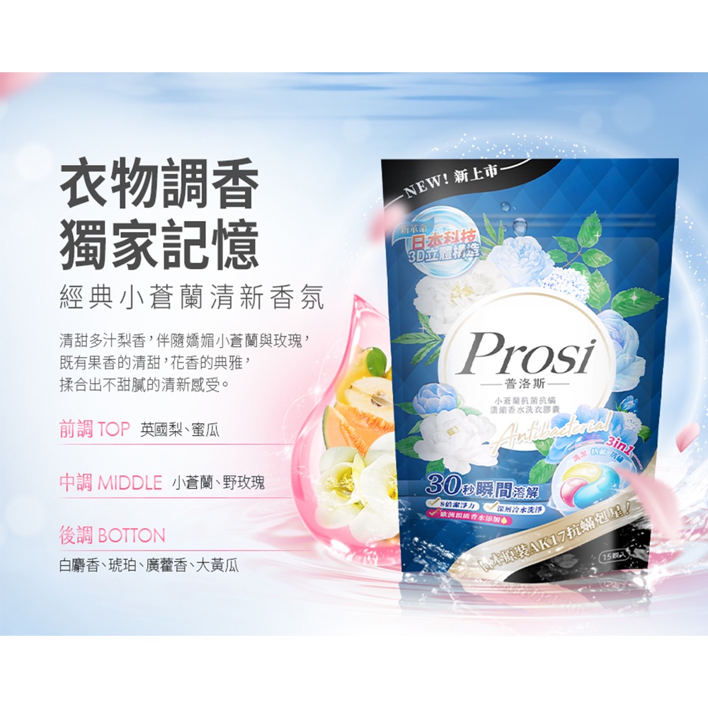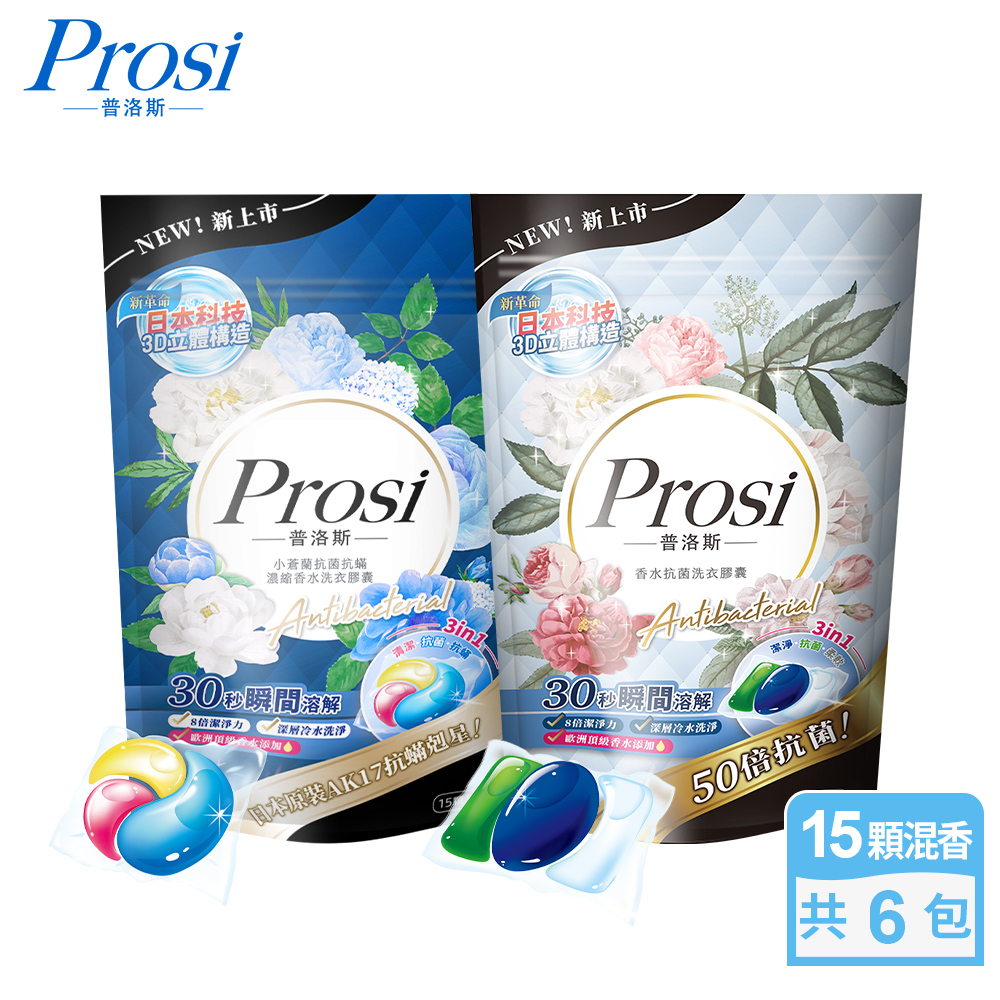 【Prosi普洛斯】小蒼蘭抗菌抗蟎香水洗衣膠囊15顆x6包(50倍抗菌/日本原裝抗蟎成分AK17) 洗衣球 洗衣凝珠【Prosi普洛斯】小蒼蘭抗菌抗蟎香水洗衣膠囊15顆x6包(50倍抗菌/日本原裝抗蟎成分AK17) 洗衣球 洗衣凝珠Laundry CareProsi普洛斯官方直營店_普洛斯Prosi/御衣坊Akira