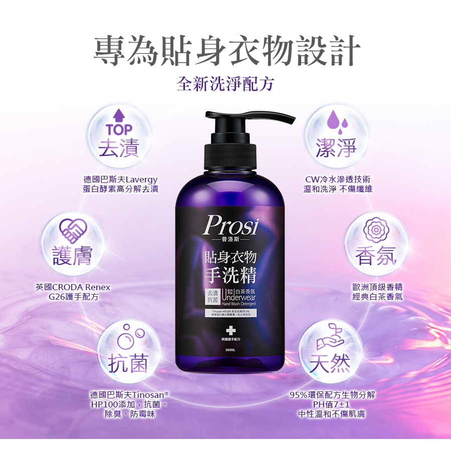 【Prosi普洛斯】 貼身衣物去漬抗菌手洗精500ml(貼身衣物/細緻衣物/瑜珈服/吸溼排汗衣)貼身衣物去漬抗菌手洗精 500mlx1入|貼身衣物去漬抗菌手洗精 500mlx2入|貼身衣物去漬抗菌手洗精 500mlx4入|酵素手洗精-經典白茶500mlx1入|酵素手洗精-經典白茶500mlx2入|酵素手洗精-經典白茶500mlx4入Laundry CareProsi普洛斯官方直營店_普洛斯Prosi/御衣坊Akira