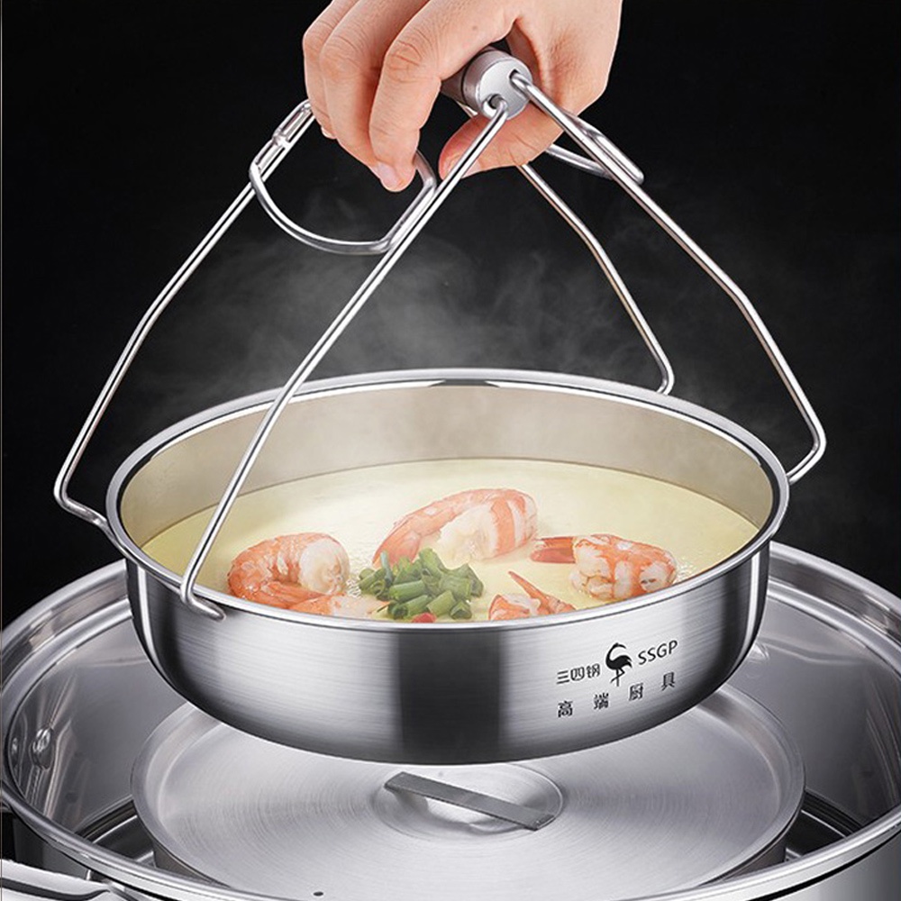 PUSH!餐具用品燉盅316不銹鋼18cm帶蓋蒸蛋碗水蒸雞蛋羹嬰兒輔食飯蒸飯蒸菜碗E206-118CM蒸蛋碗一入|18CM碗+D139防燙夾BowlsPUSH居家生活用品