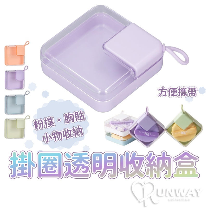 【RW】透明收納盒 胸貼收納盒 馬卡龍色系 迷你方形 掛圈盒 多用途收納盒 粉撲收納盒 闔蓋式 透明盒子 小物收納 防壓橘|紫|藍|綠|粉Jewelry OrganizersRunway Collection