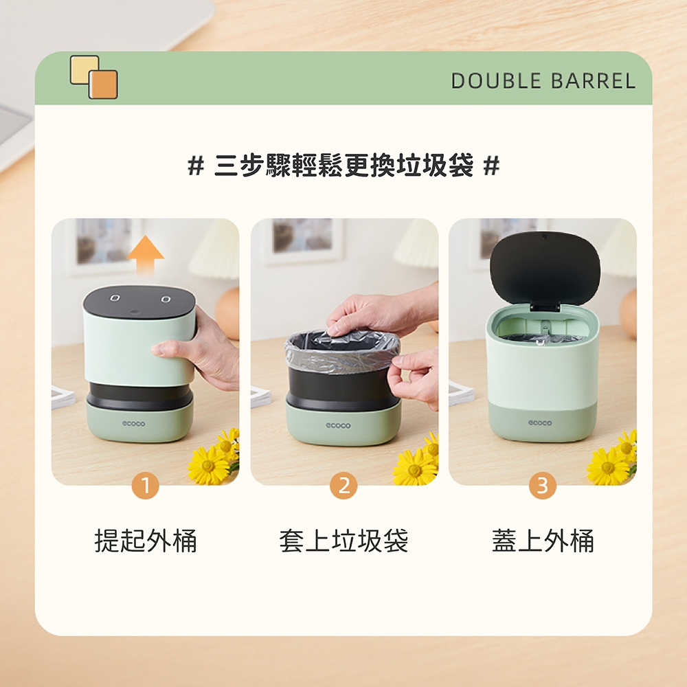 ecoco 意可可 桌上型迷你垃圾桶(附垃圾袋)小垃圾桶 按壓垃圾桶 桌面垃圾桶 辦公室垃圾桶 迷你垃圾袋 小垃圾袋摩登灰垃圾桶(內含1卷垃圾袋)上蓋淺灰|雪域白垃圾桶(內含1卷垃圾袋)上蓋深黑|抹茶綠垃圾桶(內含1卷垃圾袋)|原野綠垃圾桶(內含1卷垃圾袋)|單購垃圾袋(120入)Trash & Recycling BinsRS睿森嚴選|秋樂富油品