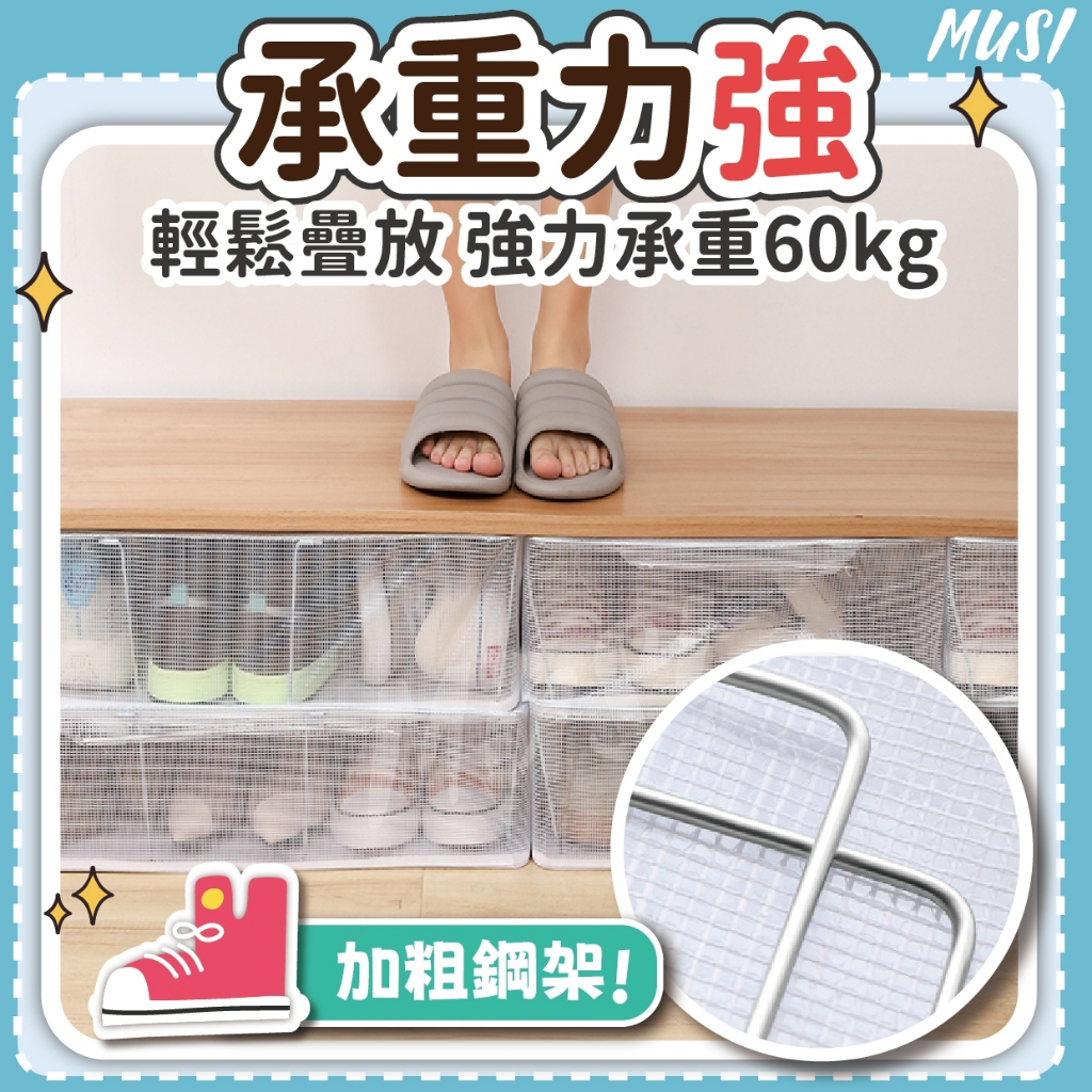 [隔日發貨]透明鞋盒 鞋盒 透明鞋盒 加粗鋼架很耐重 鞋子收納盒 鞋盒收納 床底收納 收納盒 衣服收納單開口小(可超商 蝦皮) 現貨隔天發|單開口大(請選黑貓 郵局 大型物流)Shoe Storage BoxesMUSI 口罩&包包帽子 專賣