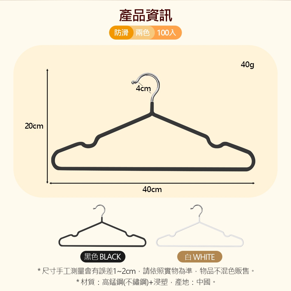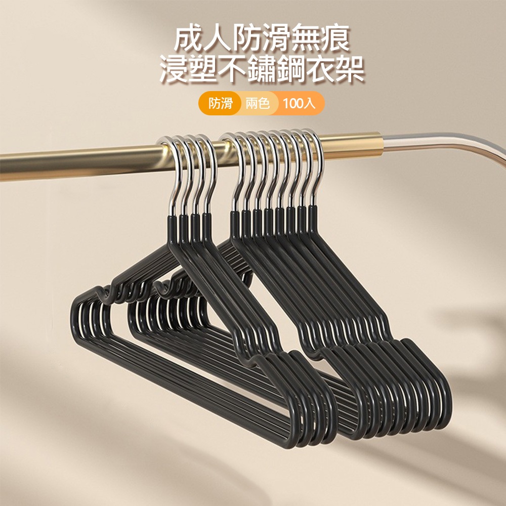 Mr.Box 100入覆膜浸塑不鏽鋼防滑無痕衣架-成人款(乾濕兩用 晾衣架 曬衣架 收納架) 兩色可選 007006黑色|白色Hangers & PegsMr.Box l 收納箱 收納櫃 洗衣籃 曬衣架 行李箱