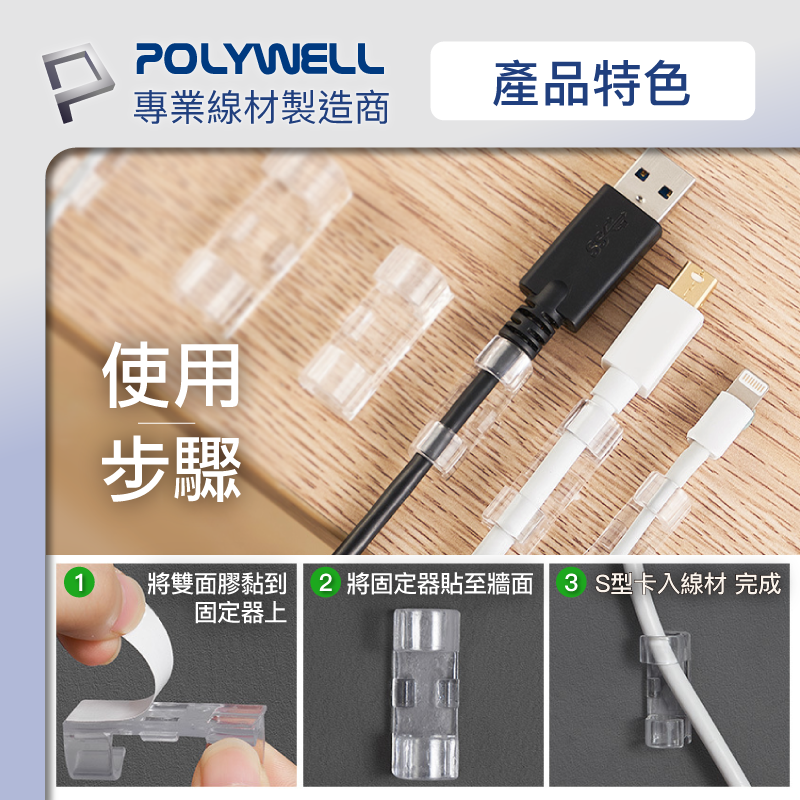 POLYWELL 黏貼式理線器 S型扣入式 20入 三種尺寸 適用不同粗細充電線 傳輸線 寶利威爾 台灣現貨中號 (20入)|大號 (20入)|小號 (20入)Desk OrganizersPOLYWELL寶利威爾官方旗艦店