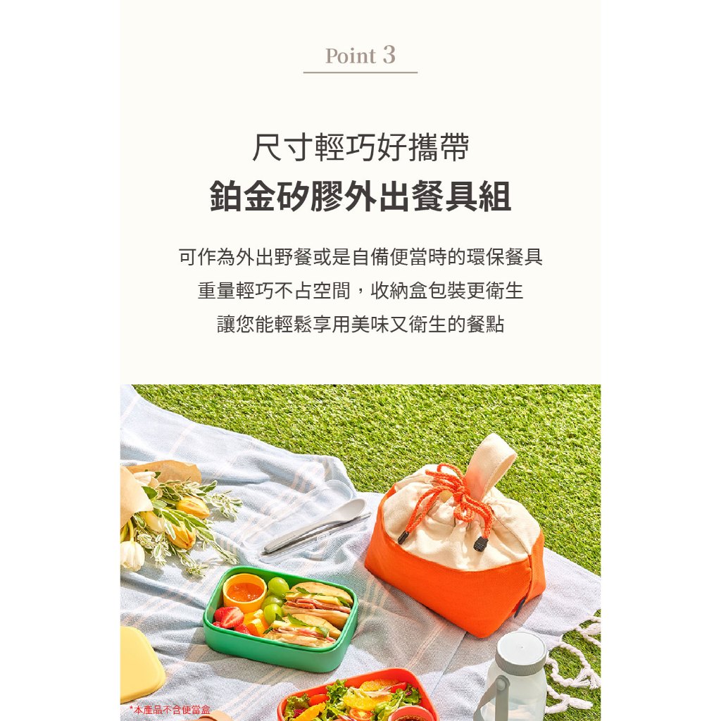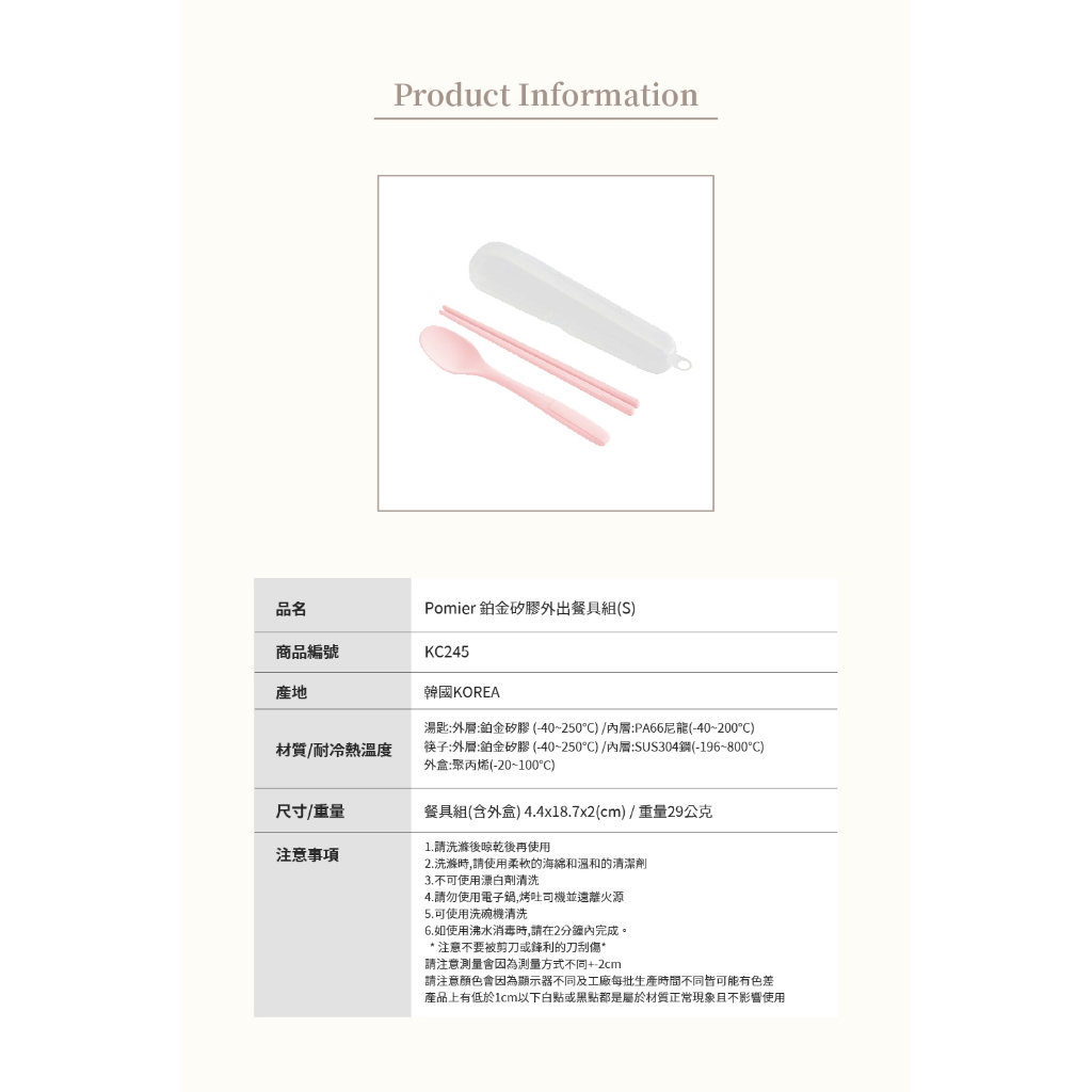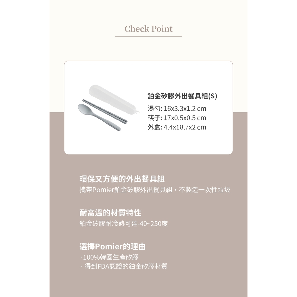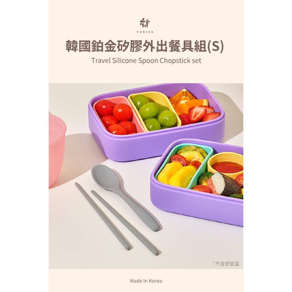 【韓國 Pomier】韓國鉑金矽膠外出餐具組(S)-附贈收納盒>外出餐具、野餐露營豆沙粉|薄荷綠|冷灰CutleriesPomier朴蜜兒