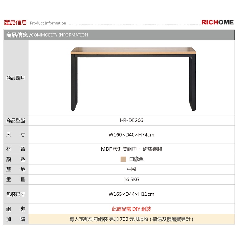 RICHOME DE266 實用工作桌(160X40CM)(可調式腳墊) 辦公桌 工作桌 電腦桌 辦公桌白橡色(160X40CM)Desks & TablesRICHOME 生活家居