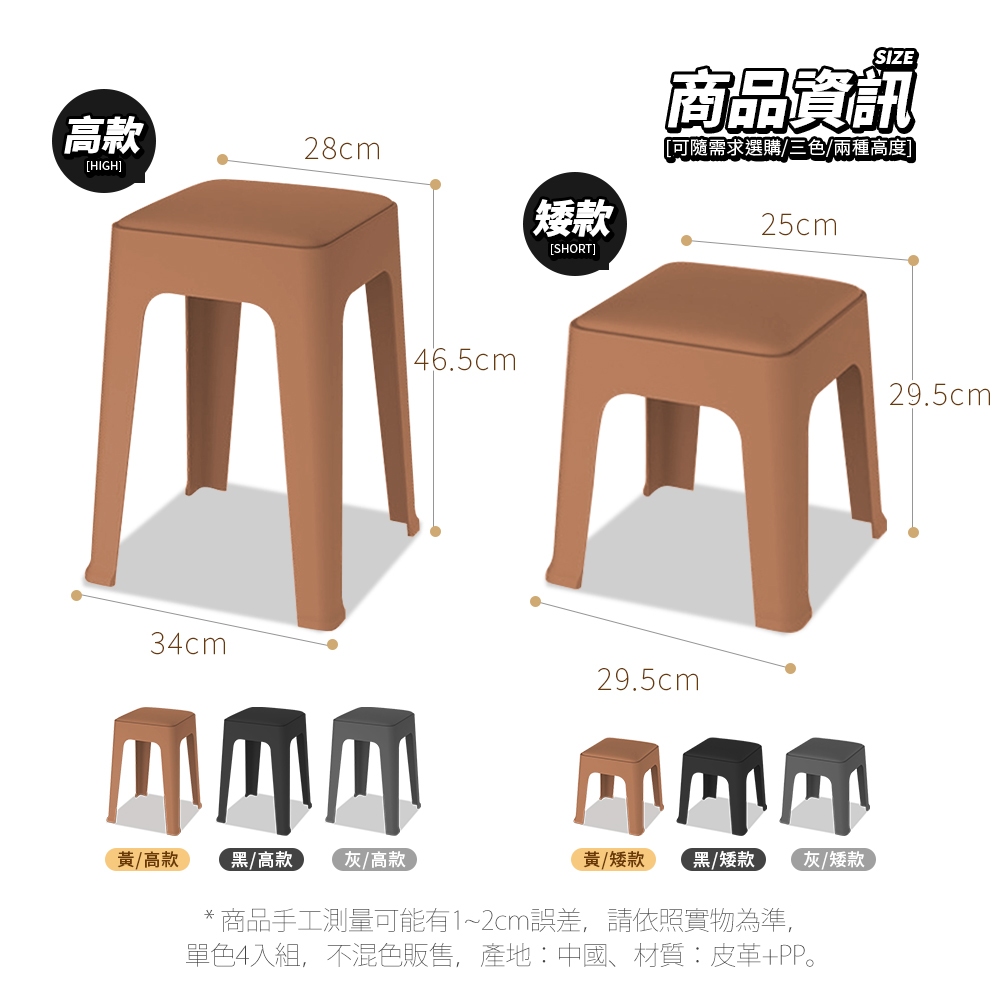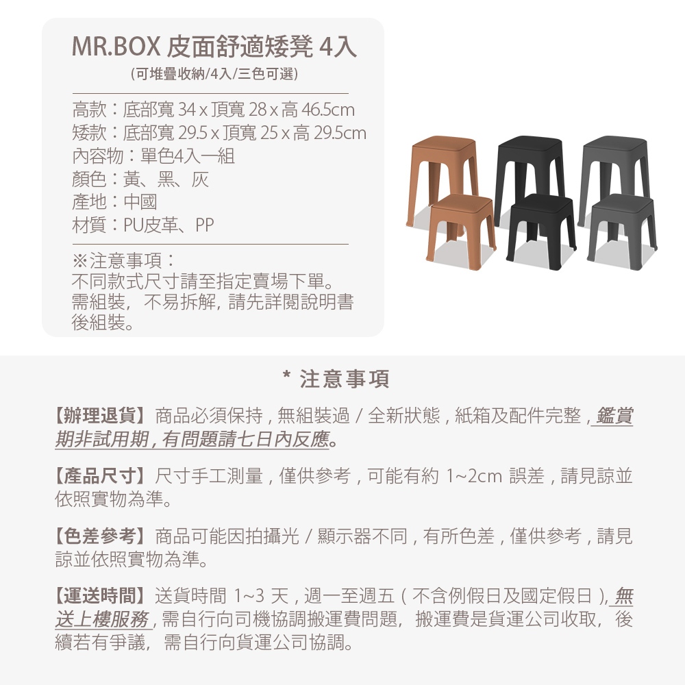 Mr.box 皮面舒適椅凳 高款/矮款 兩色可選 4入 免運矮款 4入 (黃色)|高款 4入 (黑色)|高款 4入 (灰色)|高款 4入 (黃色)|矮款 4入 (黑色)|矮款 4入 (灰色)Benches, Chairs & StoolsMr.Box l 收納箱 收納櫃 洗衣籃 曬衣架 行李箱