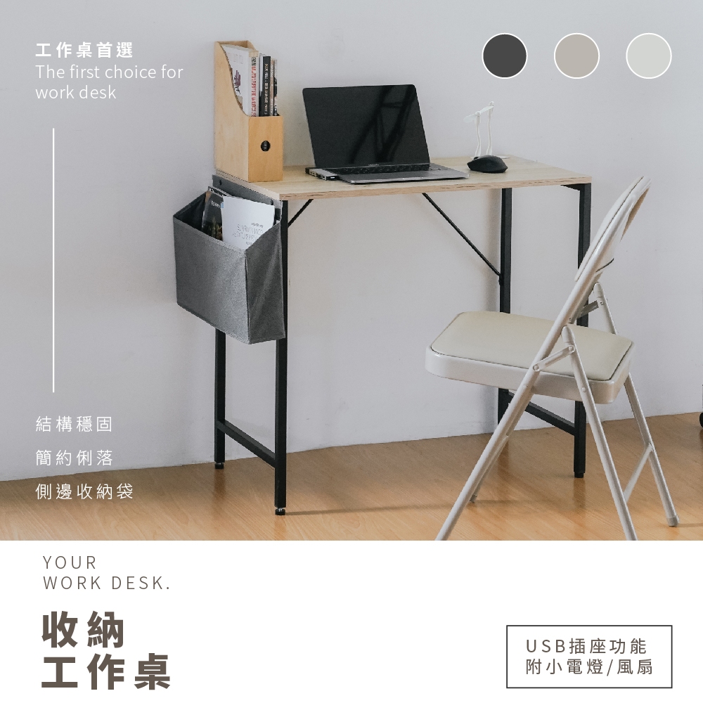 RICHOME 收納工作桌 (奶茶色/黑色/白橡木) 附贈USB充電座和收納袋 書桌 電腦桌 辦公桌 工作桌 DE320奶茶色|黑色|白橡木色Desks & TablesRICHOME 生活家居