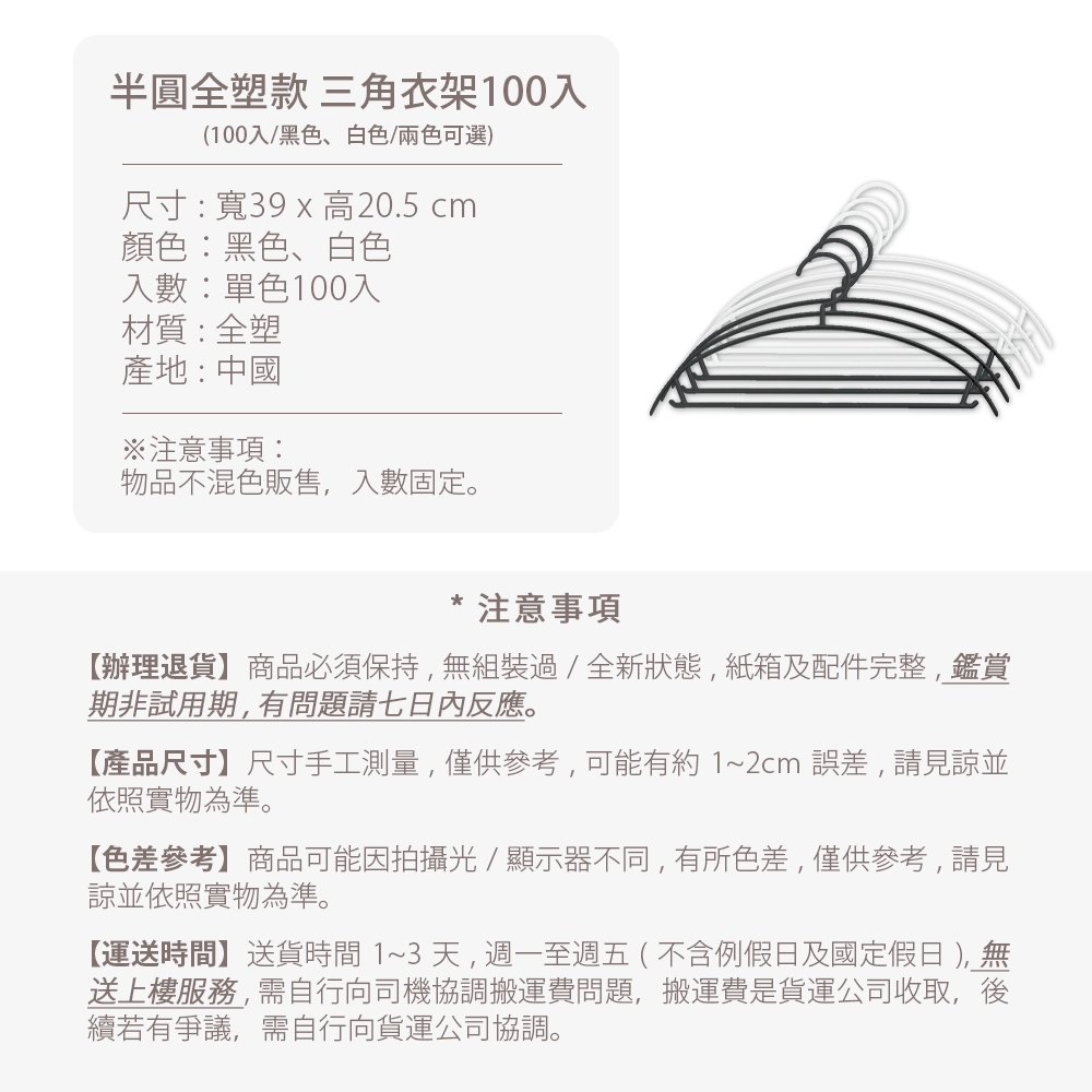 Mr.box 半弧形無痕防滑晾曬衣架/三角衣架/掛衣架/吊衣架(100入) 兩色可選 007009白色|黑色Hangers & PegsMr.Box l 收納箱 收納櫃 洗衣籃 曬衣架 行李箱