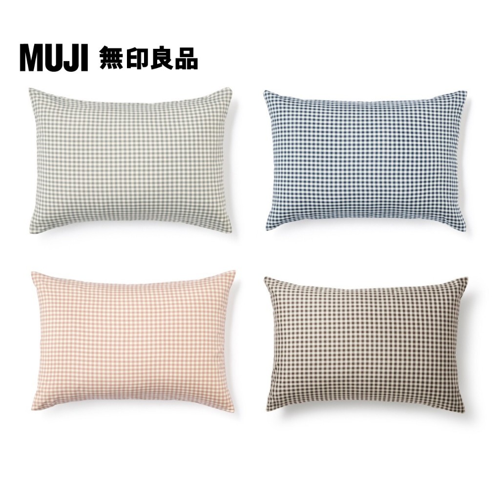 【MUJI 無印良品】再生聚酯速乾枕套/50粉紅格紋|綠格紋|深藍格紋|棕格紋PillowsMUJI無印良品 官方旗艦店