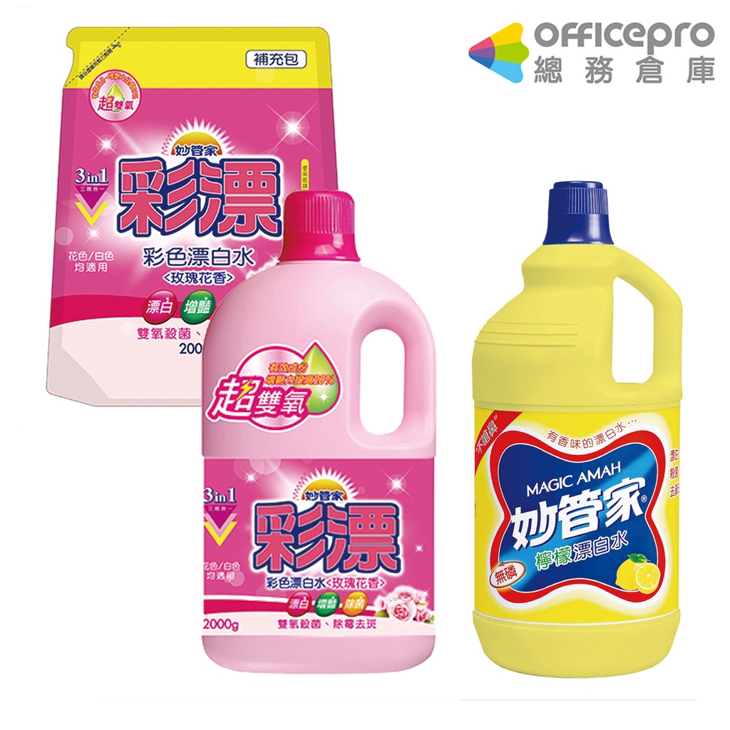妙管家 檸檬漂白水 彩漂漂白水 玫瑰花香 清潔劑 防疫用品 清潔抗菌消毒 衣物漂白 2000g玫瑰花香 補充包【超取&蝦皮上限2】|檸檬漂白水【超取&蝦皮上限2】|彩漂漂白水 玫瑰花香【超取&蝦皮上限2】Cleaning AgentsOfficepro總務倉庫 旗艦店