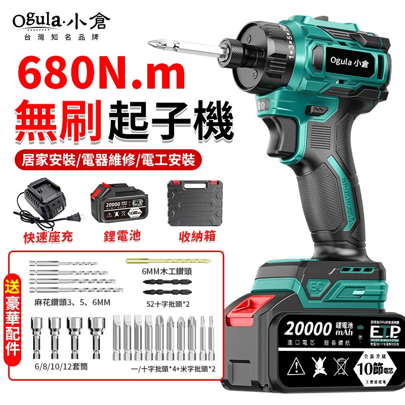【Ogula小倉】電動起子 無刷起子機 電動起子機 電鑽 680N.m大扭力 帶電量顯示LED照明燈 電動螺絲刀無刷起子機【裸機】塑箱+豪華配件|無刷起子機【五節一電】塑箱+豪華配件|無刷起子機【五節兩電】塑箱+豪華配件|無刷起子機【十節一電】塑箱+豪華配件|無刷起子機【十節兩電】塑箱+豪華配件|大藝10節電池(單個)ToolsOgula小倉【官方旗艦店】