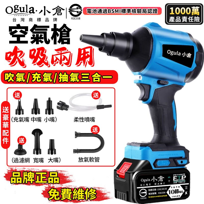 【Ogula小倉】空氣槍 吹塵槍 除塵槍 風槍 充電風壓槍【吹吸兩用】吹塵器 鋰電吹塵機 汽車風槍【正品保證】空氣槍【吹吸兩用】裸機+豪華配件|空氣槍【吹吸兩用】5節一電+豪華配件|空氣槍【吹吸兩用】10節一電+豪華配件|空氣槍【吹吸兩用】15節一電+豪華配件|BSMI:R3E558認證電池-十節電芯|BSMI:R3E558認證電池十五節電芯|空氣槍【吹吸兩用】5節兩電+豪華配件|空氣槍【吹吸兩用】10節兩電+豪華配件|空氣槍【吹吸兩用】15節兩電+豪華配件ToolsOgula小倉【官方旗艦店】