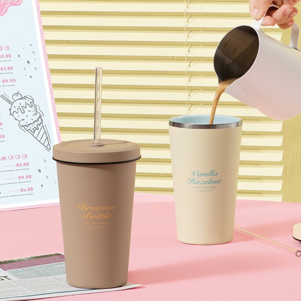 【Oolab 良杯製所】(福利品) 冰淇淋系列陶瓷易潔層吸管杯550ml (六色) 附24cm吸管雪藏香草(香草白)|布朗尼脆片(可可棕)|草莓馬卡龍(糖果粉)|藍莓糖霜(海鹽藍)|葡萄派司(雪酪紫)|薄荷夾心(青蘋綠)Water Bottles & AccessoriesOolab 良杯製所