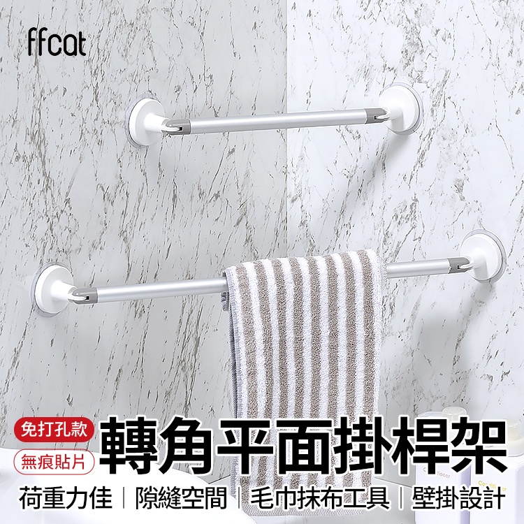【全站最高折1250元】ffcat 轉角平面二用桿 長桿/短可選 毛巾桿 抹布桿 工具吊掛 拖鞋架 無痕架 角落架短桿|長桿HooksSHCJ生活采家-石墨烯炒鍋熱銷NO.1/給皂機/淨水過濾/家用收納