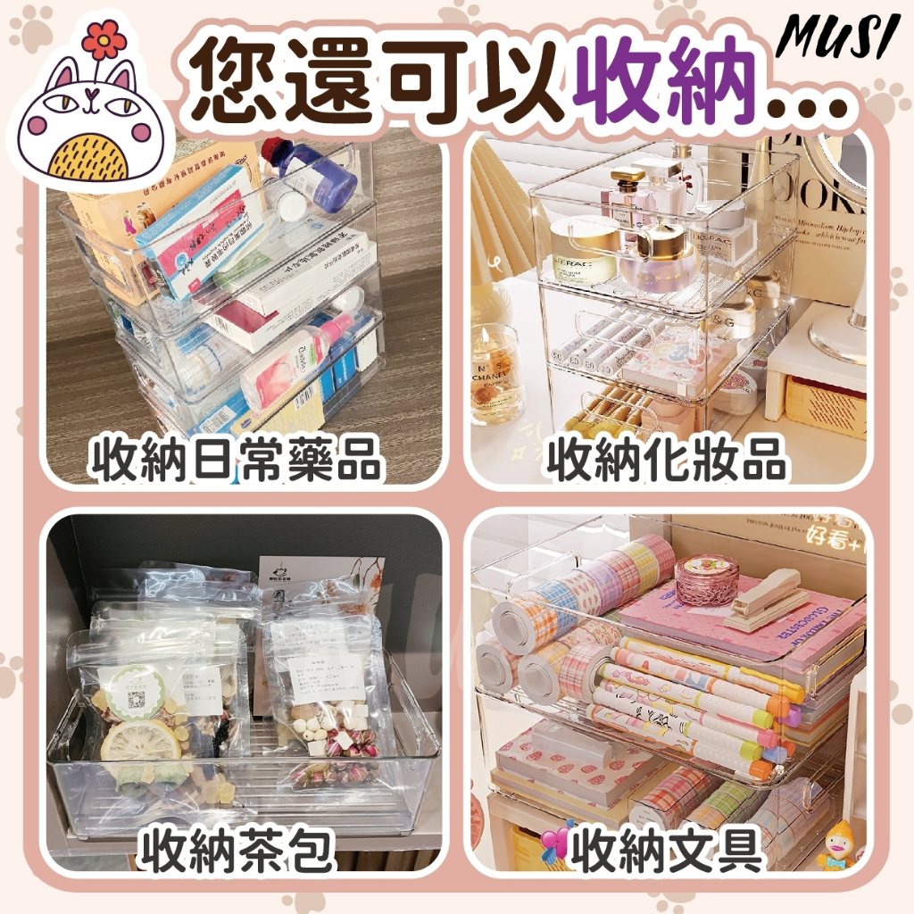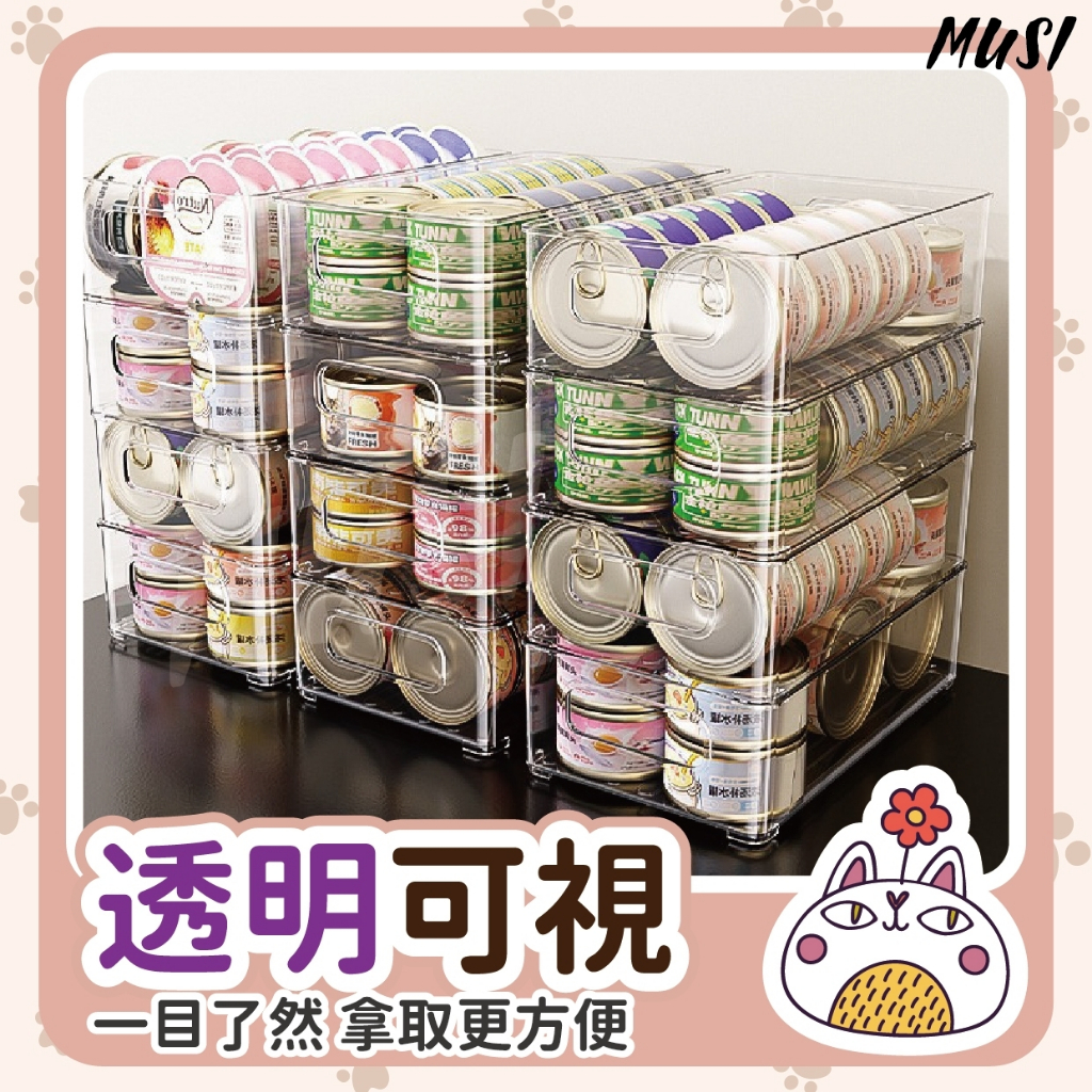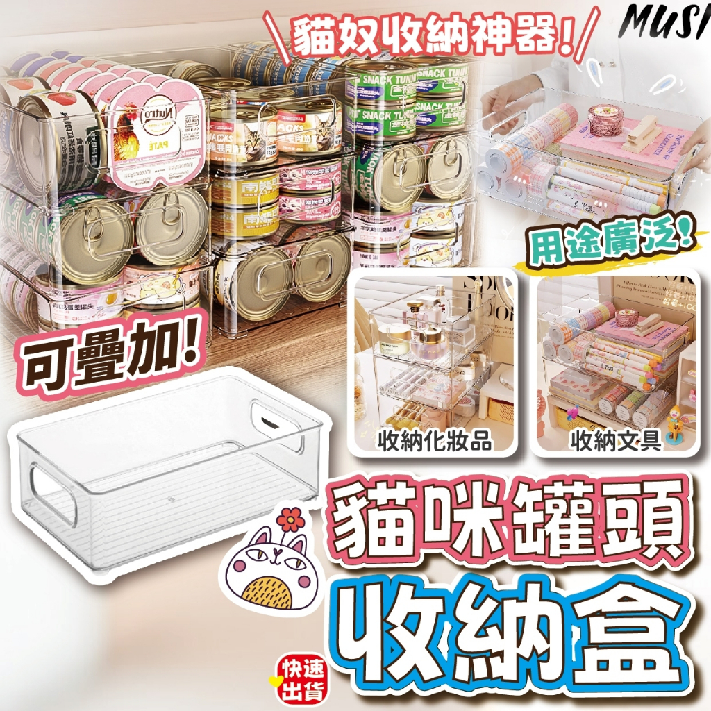 [隔天發貨]桌上收納盒 收納盒 桌面收納盒 可疊加更省空間 罐頭收納 美妝收納 文具收納盒貓咪罐頭收納盒-透明 現貨隔天發Desk OrganizersMUSI 口罩&包包帽子 專賣