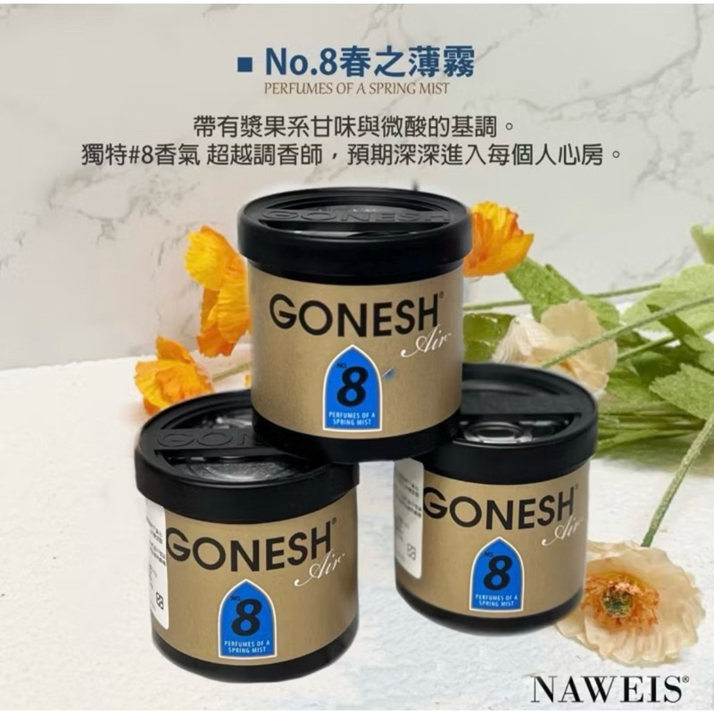 8號 Gonesh 日本8號芳香膠 春之薄霧 車用衣櫥 8號芳香罐 廣受好評 木質桂花 8號 白麝香 芳香罐 芳香膠8號(新100g)|4號(新100g)|海洋|檀香(新100g)|黑刺|埃及之旅|木質桂花|白麝香(新100g)OthersNaweis納唯詩精油