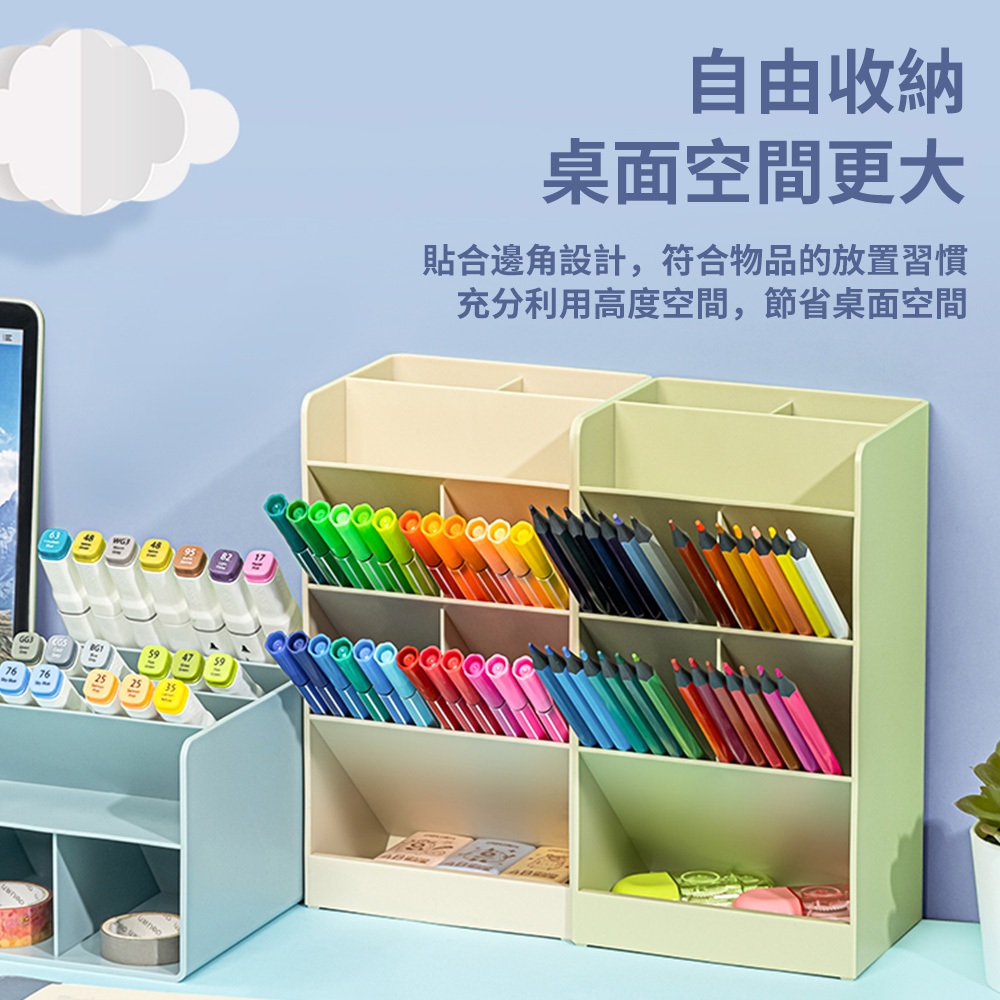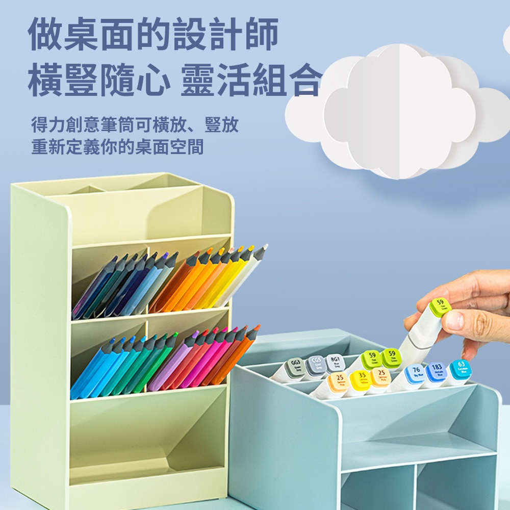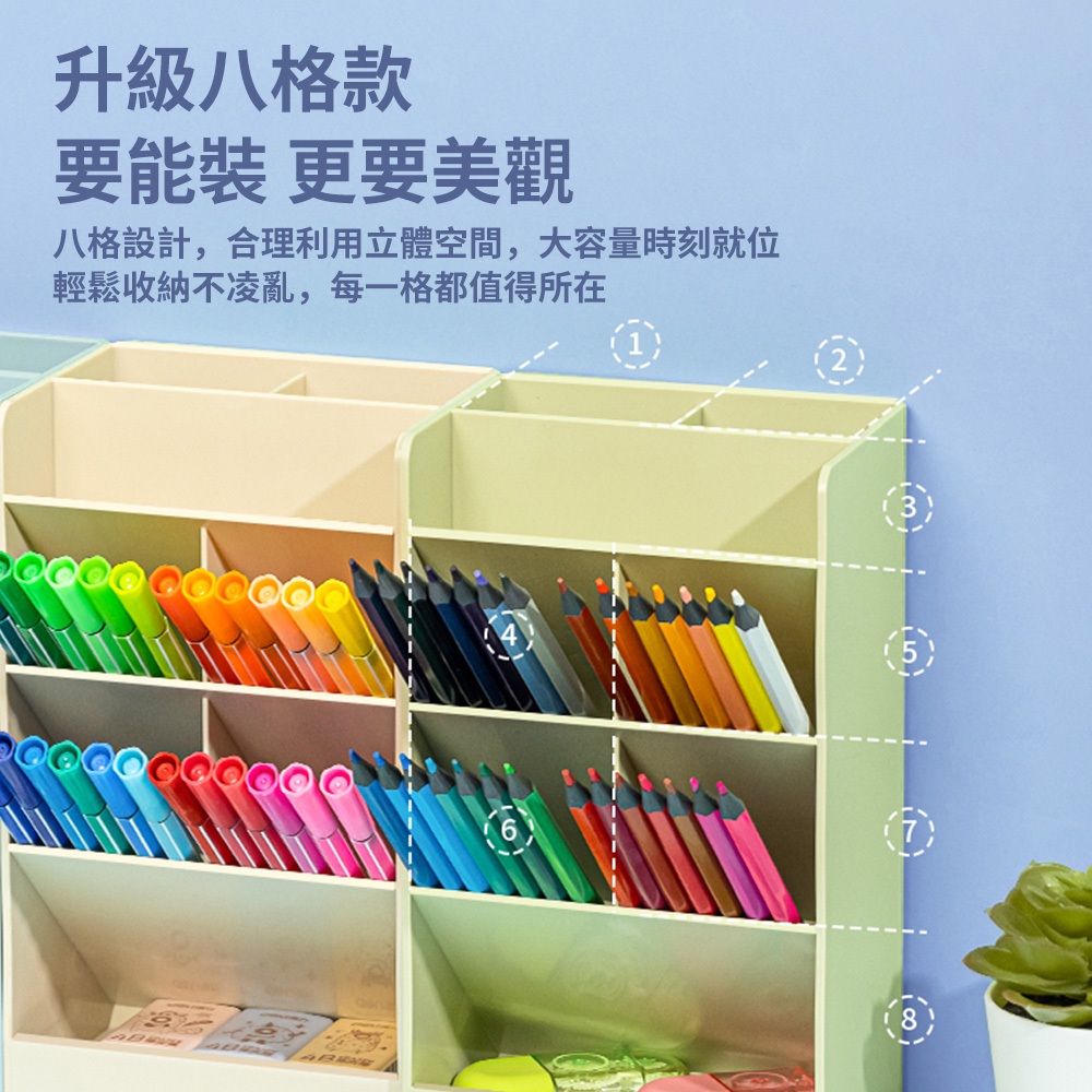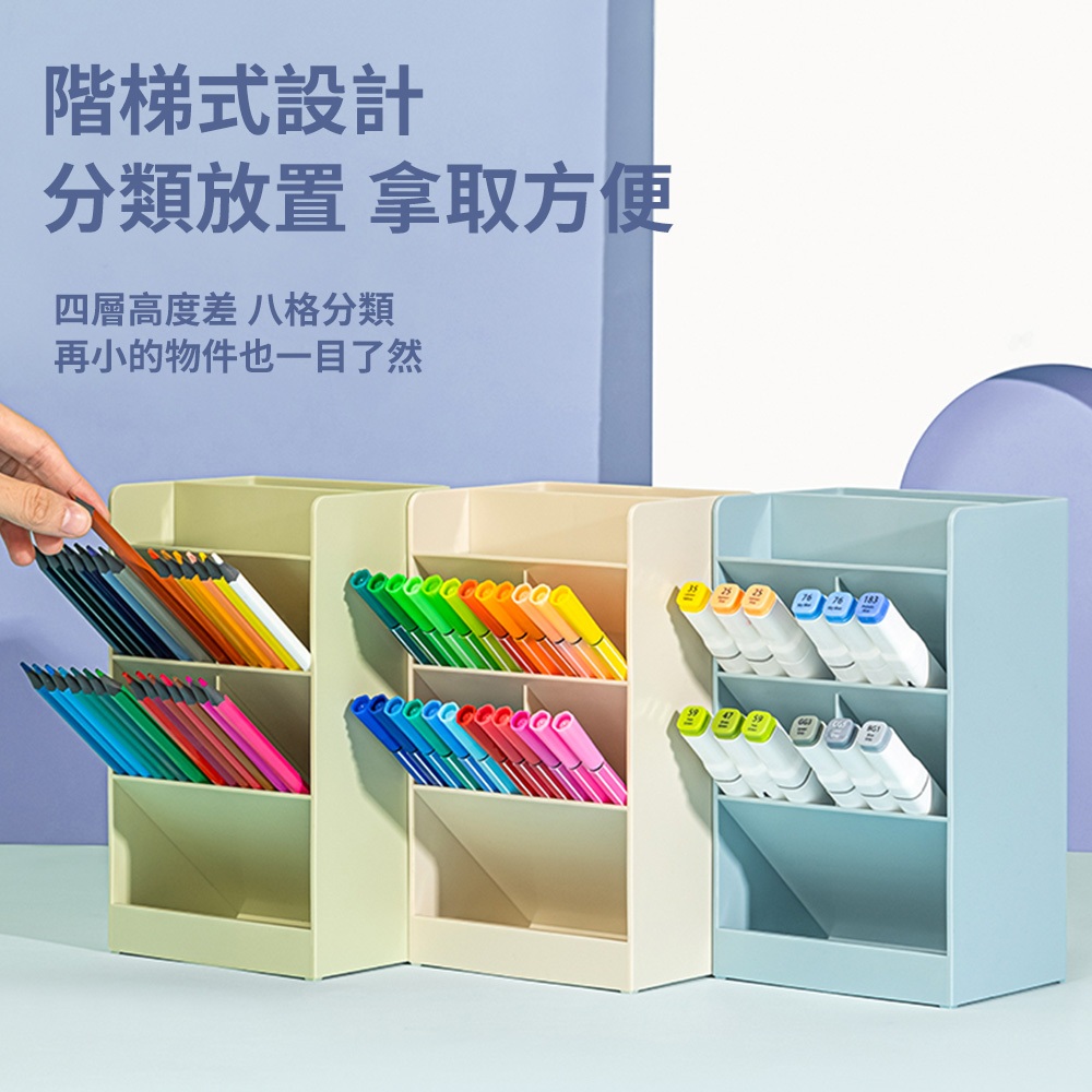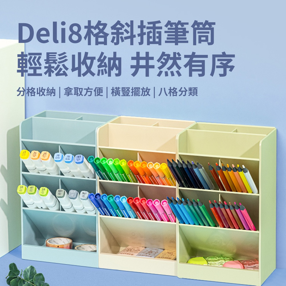 得力Deli 8格斜插筆筒/8939/三色可選/120x91x205mm|Officepro總務倉庫米白|綠色|藍色Desk OrganizersOfficepro總務倉庫 旗艦店