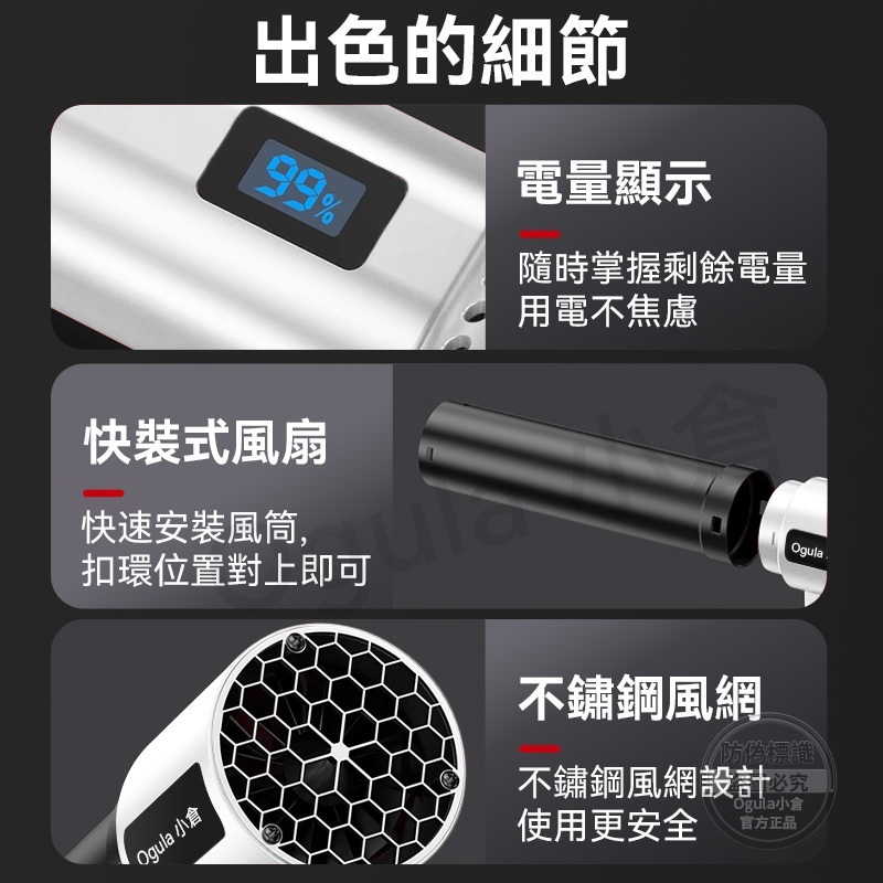 【Ogula小倉】無刷暴力風扇 渦輪暴風機 1600g超大風力 90mm四檔風速 吹水機 吹塵槍 渦流空氣砲 帶電量顯示BSMI認證電池【十五節電芯】*1|渦輪增壓款【裸機】吹力可達1100g|無刷涵道颶風扇【裸機】吹力高達1400G|無刷涵道颶風扇【五節一電+座充】|無刷涵道颶風扇【五節兩電+座充】|無刷涵道颶風扇【十節一電+座充】|無刷涵道颶風扇【十節兩電+座充】|無刷涵道颶風扇【十五節一電+座充】|無刷涵道颶風扇【十五節兩電+座充】|無刷航模空氣砲【裸機】暴風吹力1600g|無刷航模空氣砲【十節一電】電顯4檔風速|無刷航模空氣砲【十節兩電】電顯4檔風速|無刷航模空氣砲【十五節一電】電顯4檔風速|無刷航模空氣砲【十五節兩電】電顯4檔風速ToolsOgula小倉【官方旗艦店】