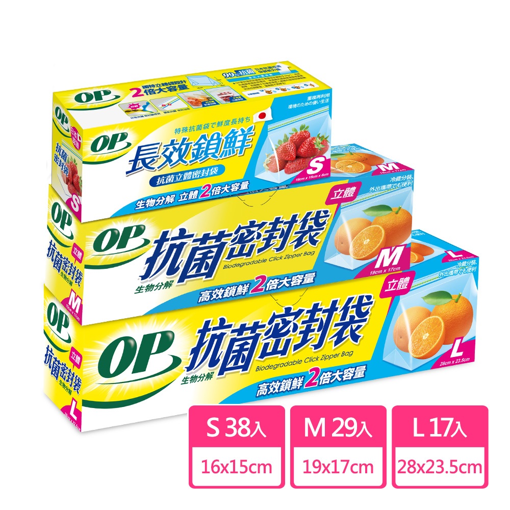 【現貨免等】【OP】生物分解抗菌立體密封袋 – S (38枚) / M (29枚) L / (17枚) 原廠直送M號-29枚|L號-17枚|S號-38枚Food StorageOP家事家用清潔用品 領導品牌 官方旗艦店