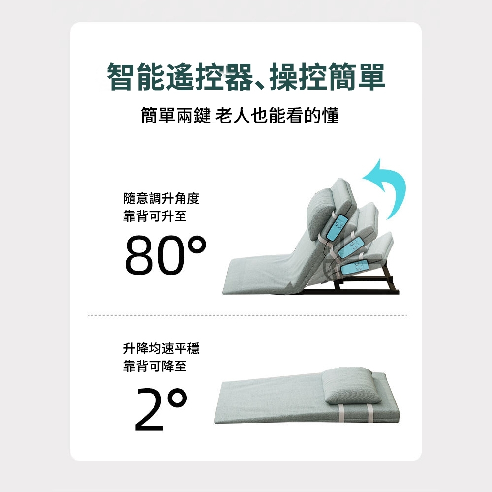 【歐適樂OSLE】公司貨 起床器 電動床墊 電動起身輔助器 電動床 遙控操作 29-80°坡度調節 一鍵升降75寬短款無扶手款特價 每天僅限1件|75寬短款扶手款特價 每天僅限1件|75寬長款扶手款特價 每天僅限1件|75寬短款+密度海綿+灰色+無扶手|75寬短款+密度海綿+灰色+扶手款|75寬長款+密度海綿+灰色+扶手款Bed Frames & HeadboardsOSLE歐適樂【官方旗艦店】